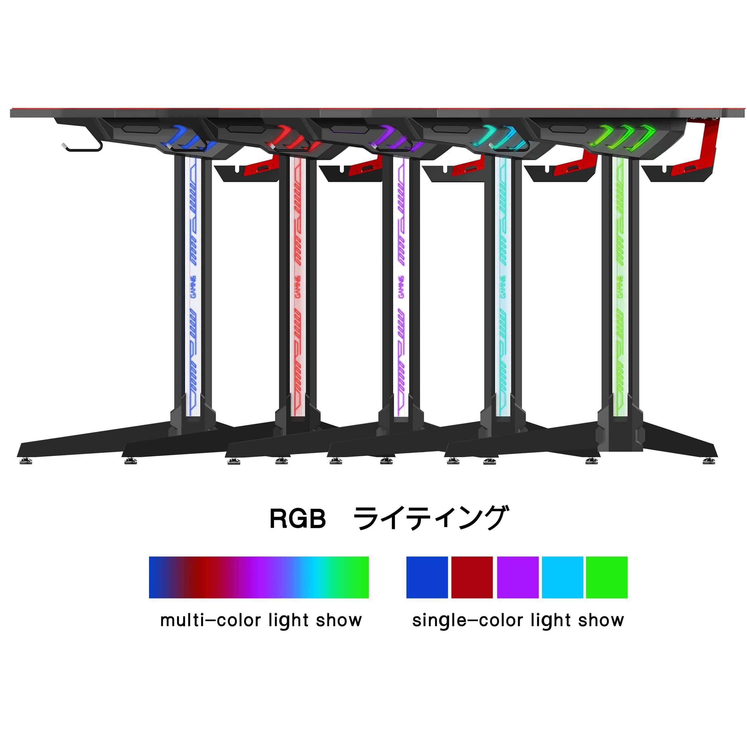 デスクにはおしゃれなLEDライトが搭載されており、7種類のモードや5色の光で個性的なゲーミングスペースを演出できます。気分に合わせたライティングが可能で、盛り上がるゲーム仲間との時間をより特別なものにします。