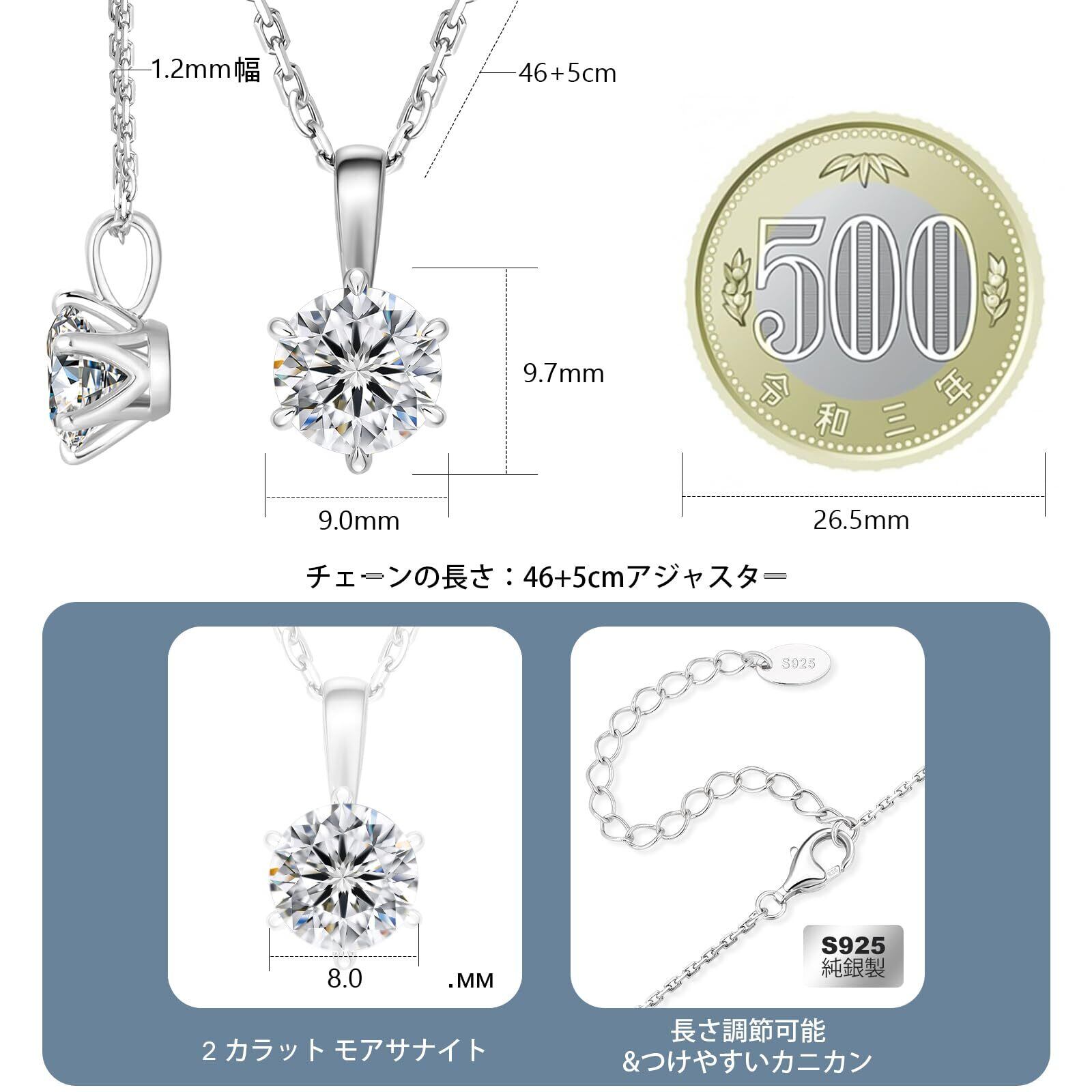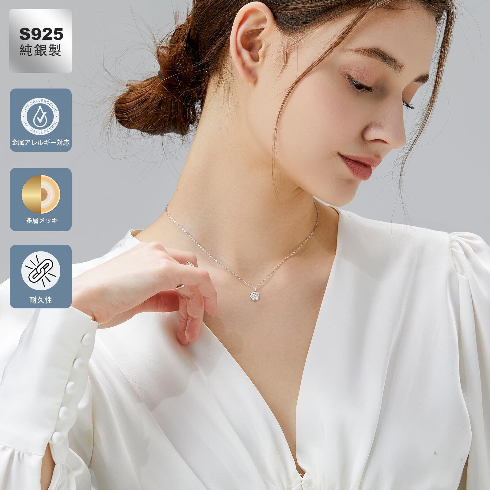 [KRKC] モアッサナイト レディースネックレス 6本爪一粒ダイヤ 0.5ct/1ct/2ct/3ct/4ct シルバー925 モアサナイト ペンダントネックレス 金属アレルギー対応 ホワイトゴールメッキ 長さ調節 ギフトボックス付き 女性 プレゼント 誕生日 ギフト(長45cm+アジャスター5cm)