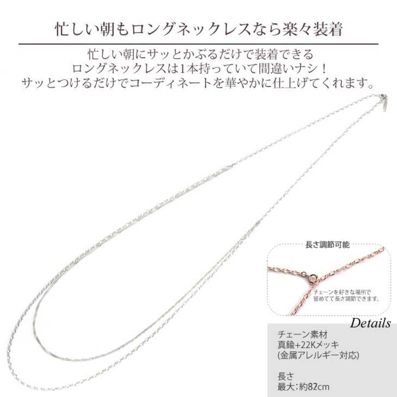 チェーン素材:真鍮+ロジウムメッキ 【金属アレルギー対応・ニッケルフリー】