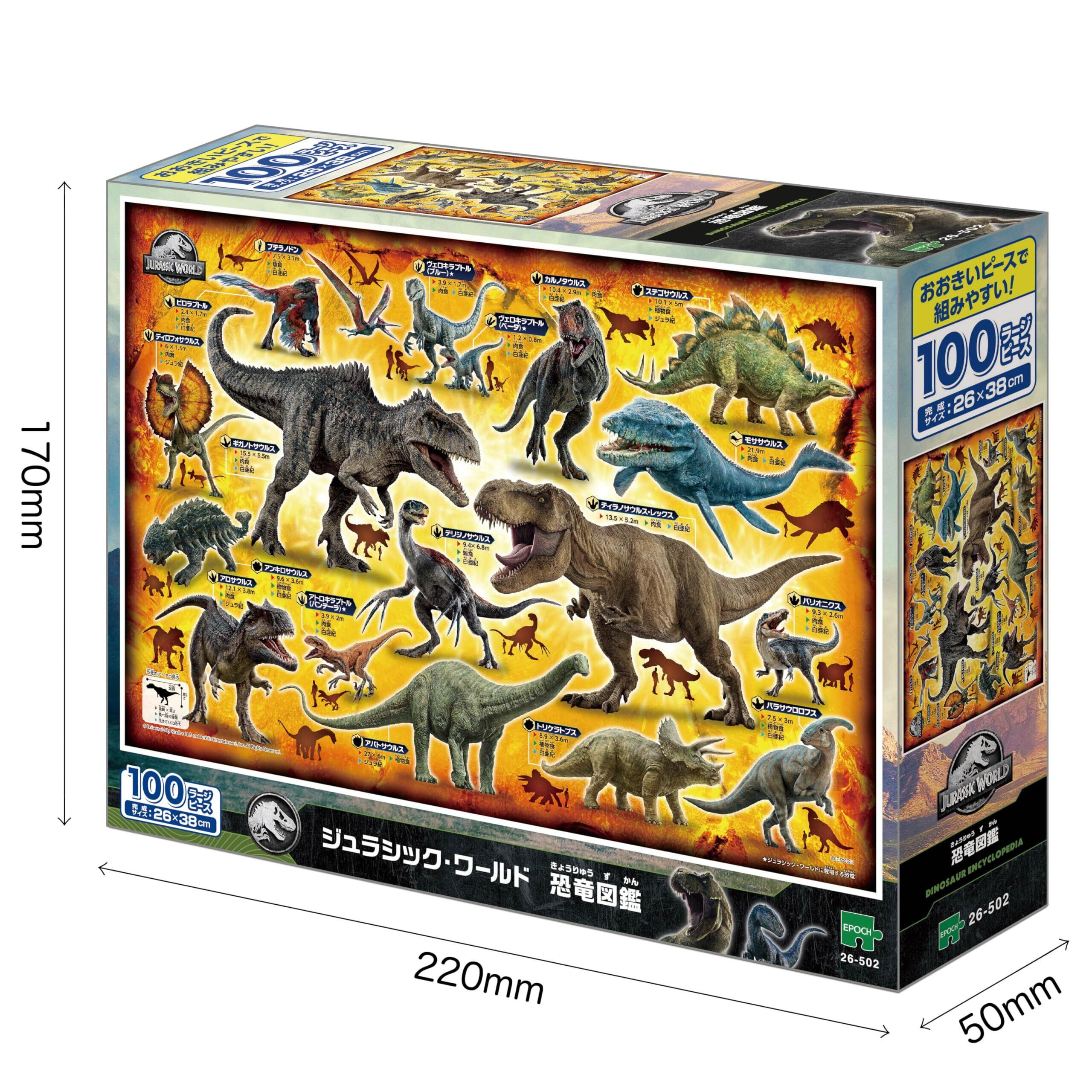 エポック社 100ラージピース ジグソーパズル ジュラシックワールド ジュラシック・ワールド 恐竜図鑑 (26×38cm) 26-502 のり付き ヘラ付き 点数券付き EPOCH