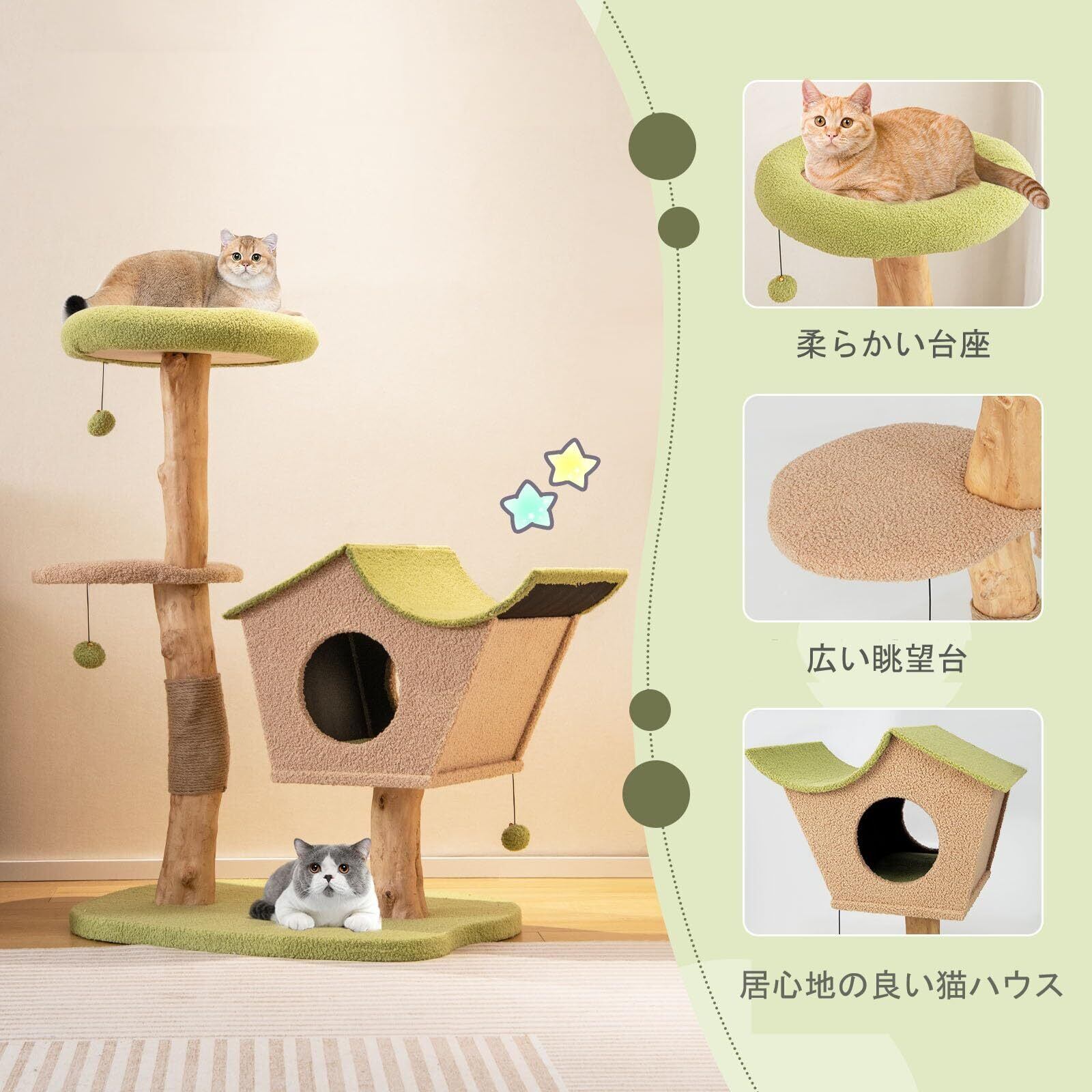 BestBuy キャットタワー 高さ110cm 木製 ネコタワー 猫ハウス 多頭飼い 据え置き ポンポン玉付き 猫部屋 猫タワー 猫ハウス 爪とぎ 爪磨き 爪研ぎ 安定 可愛い 運動不足解消 猫おもちゃ 猫の遊び場 猫用品 ペット用品
