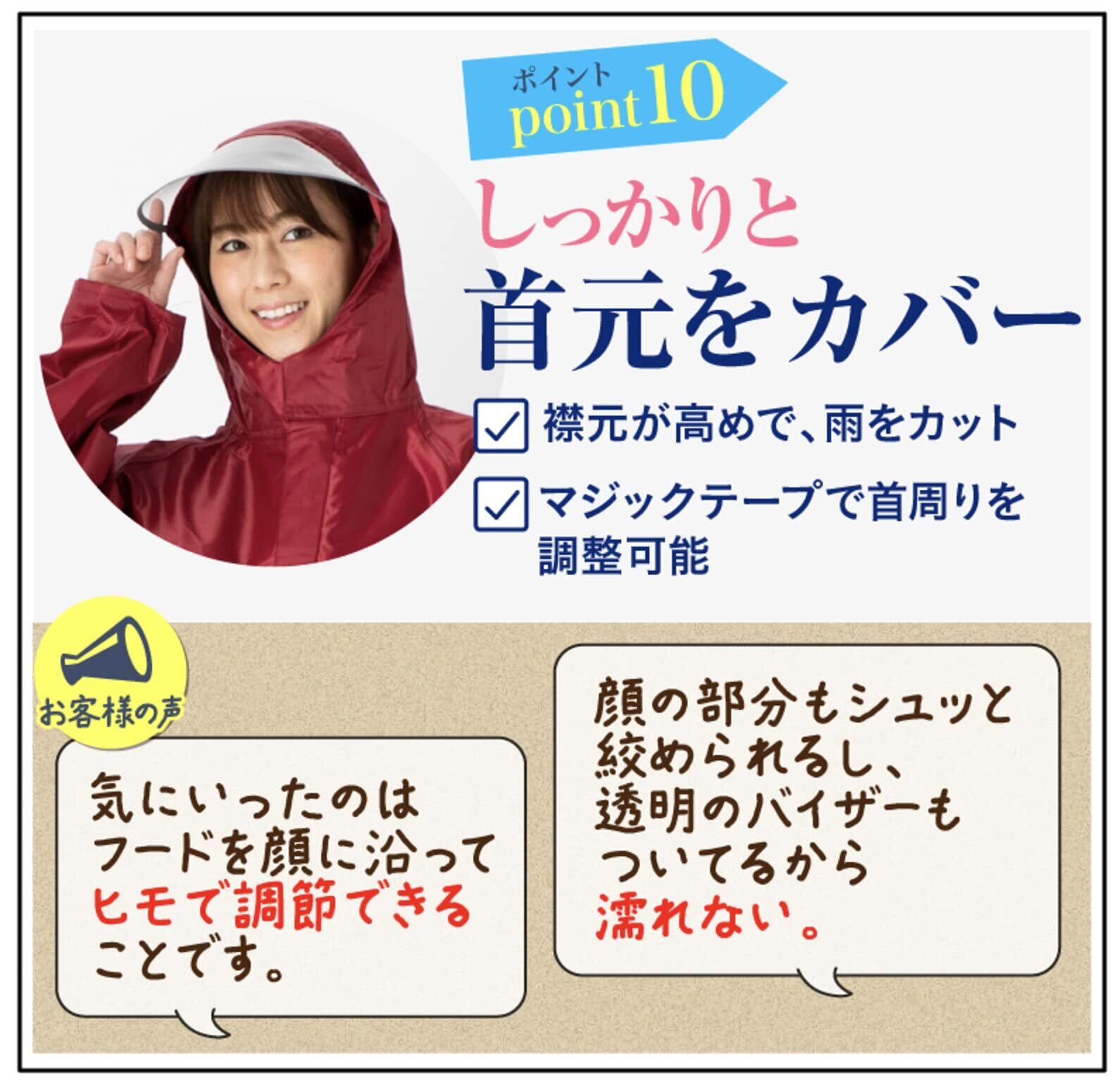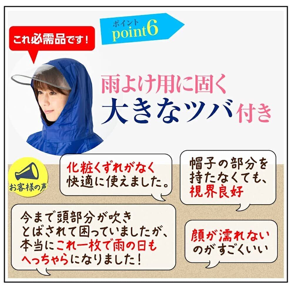 自転車やバイクに最適なこのレインコートは、ツバ付きのバイザーが顔をガードし、視界を確保。どんなシーンでもおしゃれを楽しむことができ、自信を持ってお出かけできるアイテムです!