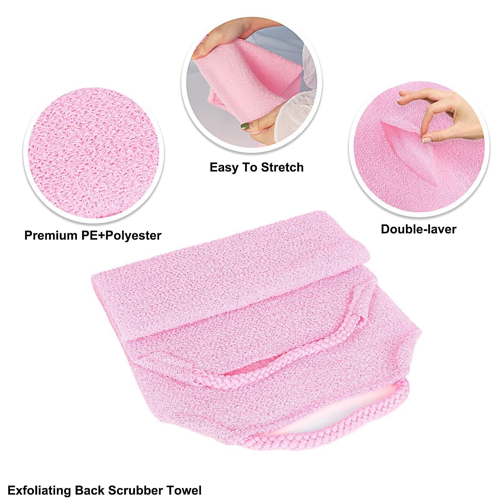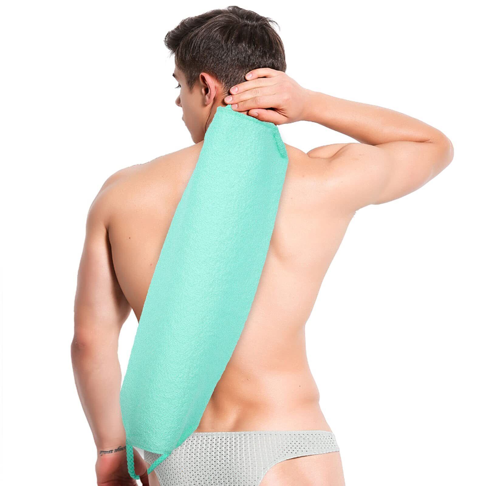 【伸縮可能】: 幅が広くて長いサイズ、通常のタオルよりも長い、ストレッチサイズ: 48 x 18.5 cm、伸縮性のある長さ: 90.2 x 18.5 cm、バス角質削りタオルは持ち手付きで、背中全体、体の部分をきれいにします。
