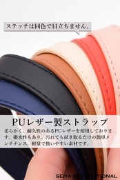 【選べるカラー】ショルダーストラップのカラーは人気のブラック・ネイビー・ブラウン・ベージュ・ピンク・レッドをご用意しました。金具のカラーはシルバー・ゴールドからお選びいただけます。素材には柔らかく耐久性のあるPUレザーを採用しました。撥水性もあり、汚れてもふき取るだけの簡単メンテナンス。軽量で扱いやすい素材です。