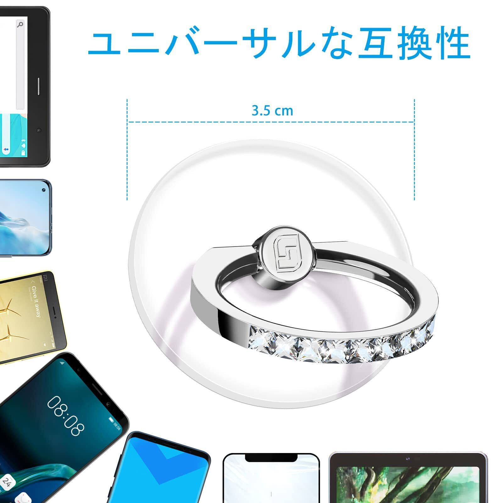 キラキラ光るスマホリング:キラキラ輝くラインストーンのスマホリングは、どんなスマホにもマッチし、より美しい外観を実現します。また、家族、友人、同僚、特別な日、クリスマスの贈り物にも最適です。
