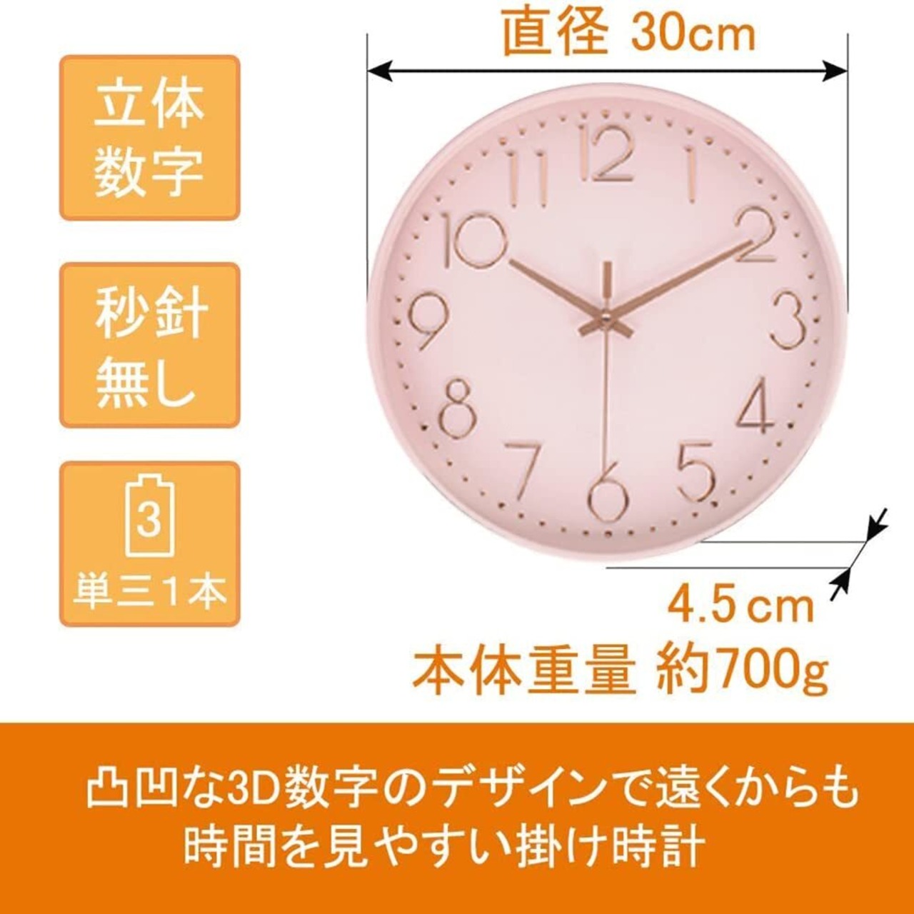 HZDHCLH 掛け時計 おしゃれ 連続秒針 静音 壁掛け時計 部屋 北欧 インテリア 掛時計 玄関 30cm (ソフトピンク)