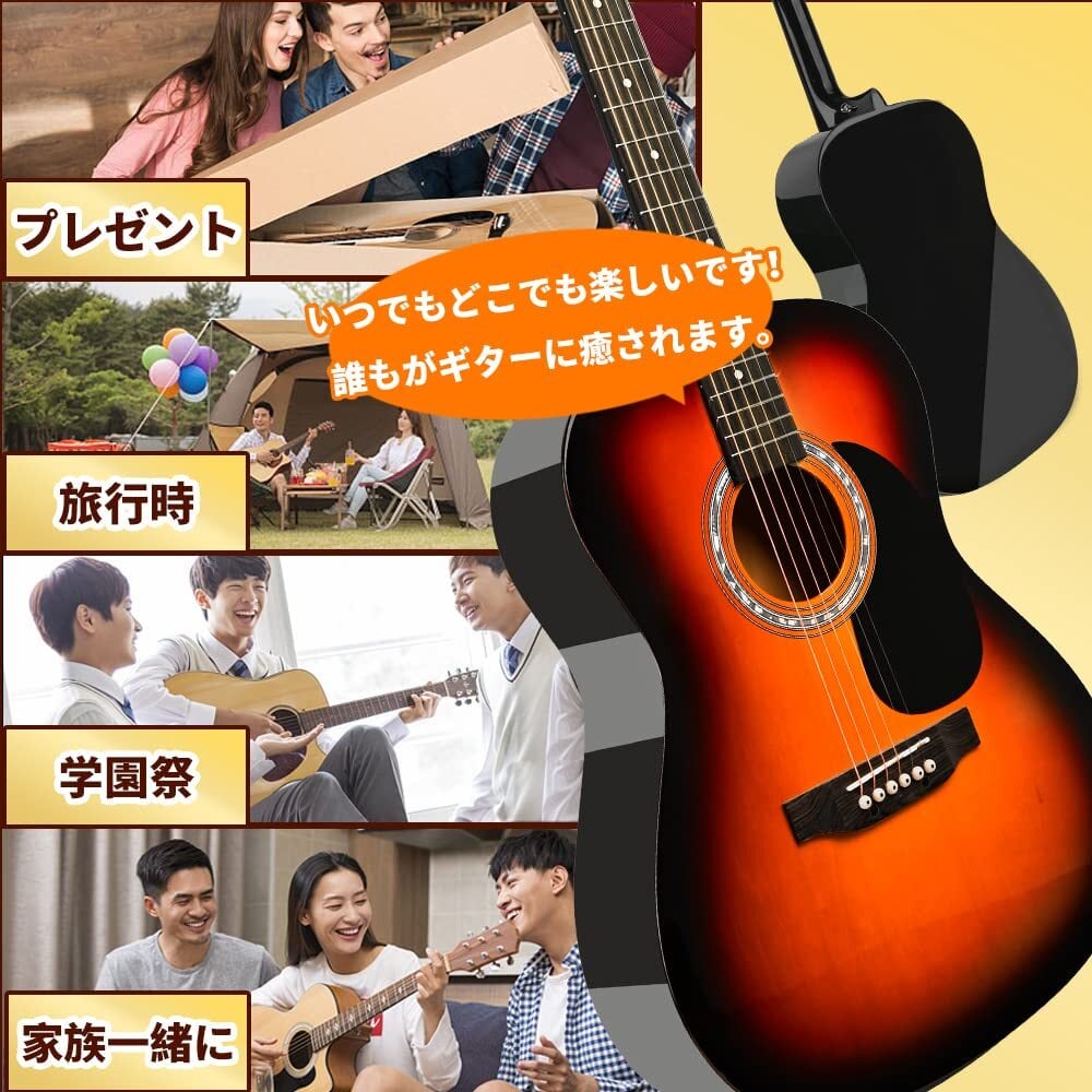 【新春セール】BESYOU アコースティックギター 初心者入門用セット 大人 学生用 39インチ アコギ 練習ギター 厳選バスウッド材 ギター サンバースト色 チューナー 付き クラシックギター