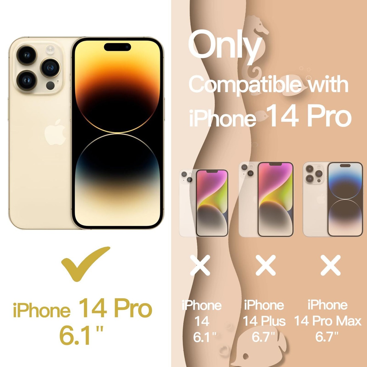 [互換性] iPhone 14 Pro 6.1インチ専用に設計されています。購入する前に携帯電話のモデルを再確認してください。さらに、黄ばみ防止の背面は超透明で、携帯電話の絶妙なロゴを美しく見せます