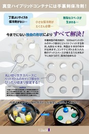 「この『UJack 真空ハイブリッドコンテナ用 手裏剣 保冷剤』をご利用いただき、いつでも新鮮な食材を楽しんでください!」