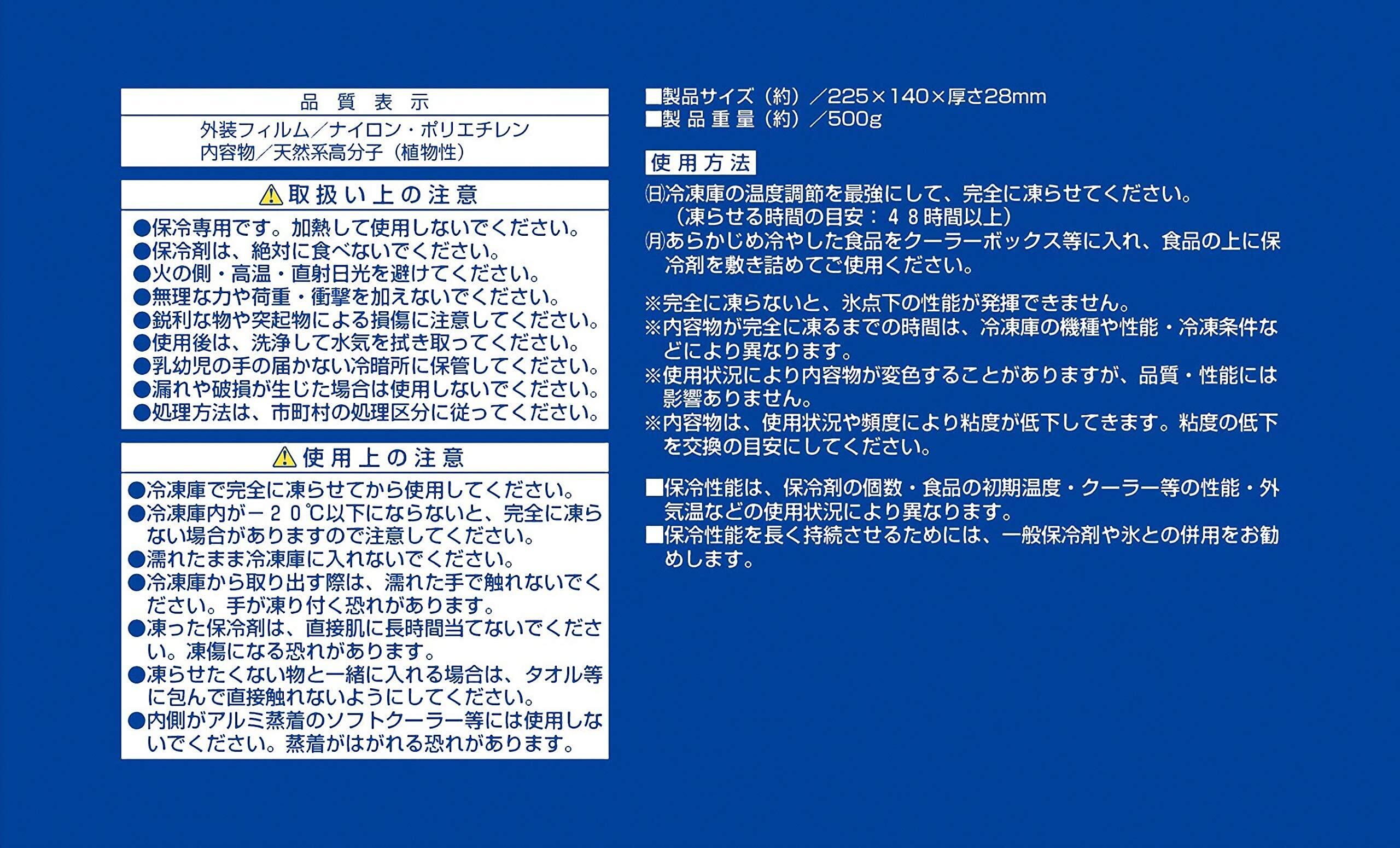 仕様:抗菌タイプ、備考:冷凍庫で凍らせてください。繰り返し何度でも使えます。一般保冷剤・氷との併用で保冷効果がアップ。原産国:日本
