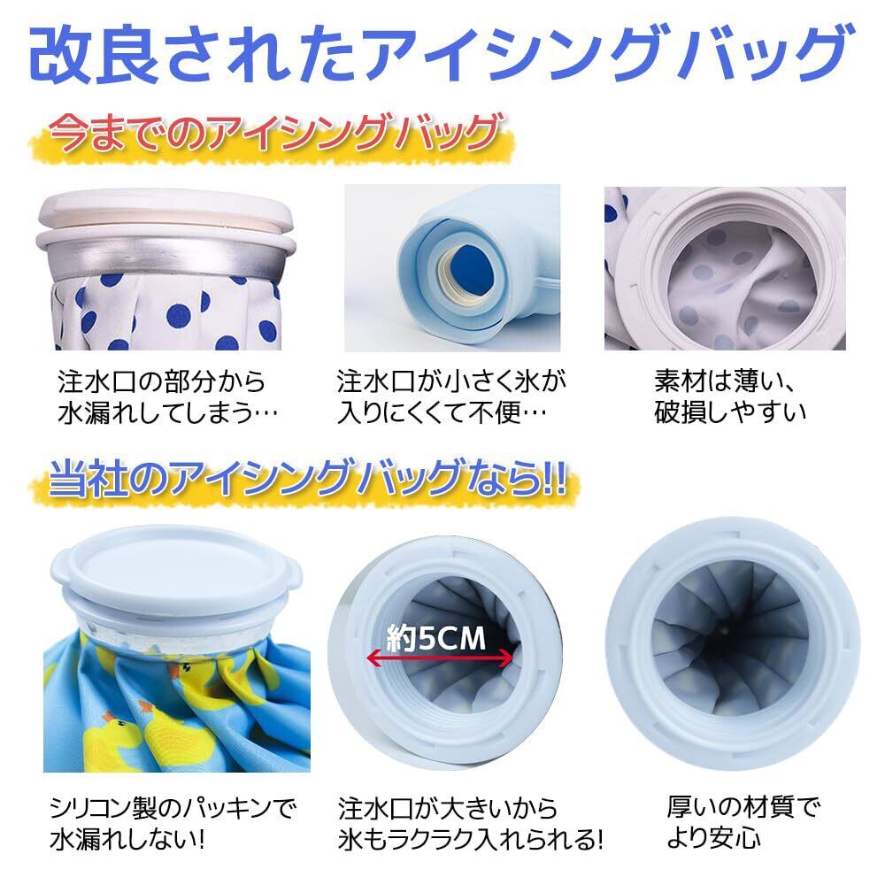 【大口径設計・水漏れ防止】アイシングバッグは大口径設計により氷の出し入れが簡単で、ネジ式のセーフティシールストッパーを使用しているので水漏れの心配はありません。【軽量で持ち運び可能】アイスバッグは持ち運びに便利で、軽量です。車、ワークデスク、自宅、旅行用バッグに入れて、すぐに冷却処置を行うことができます。