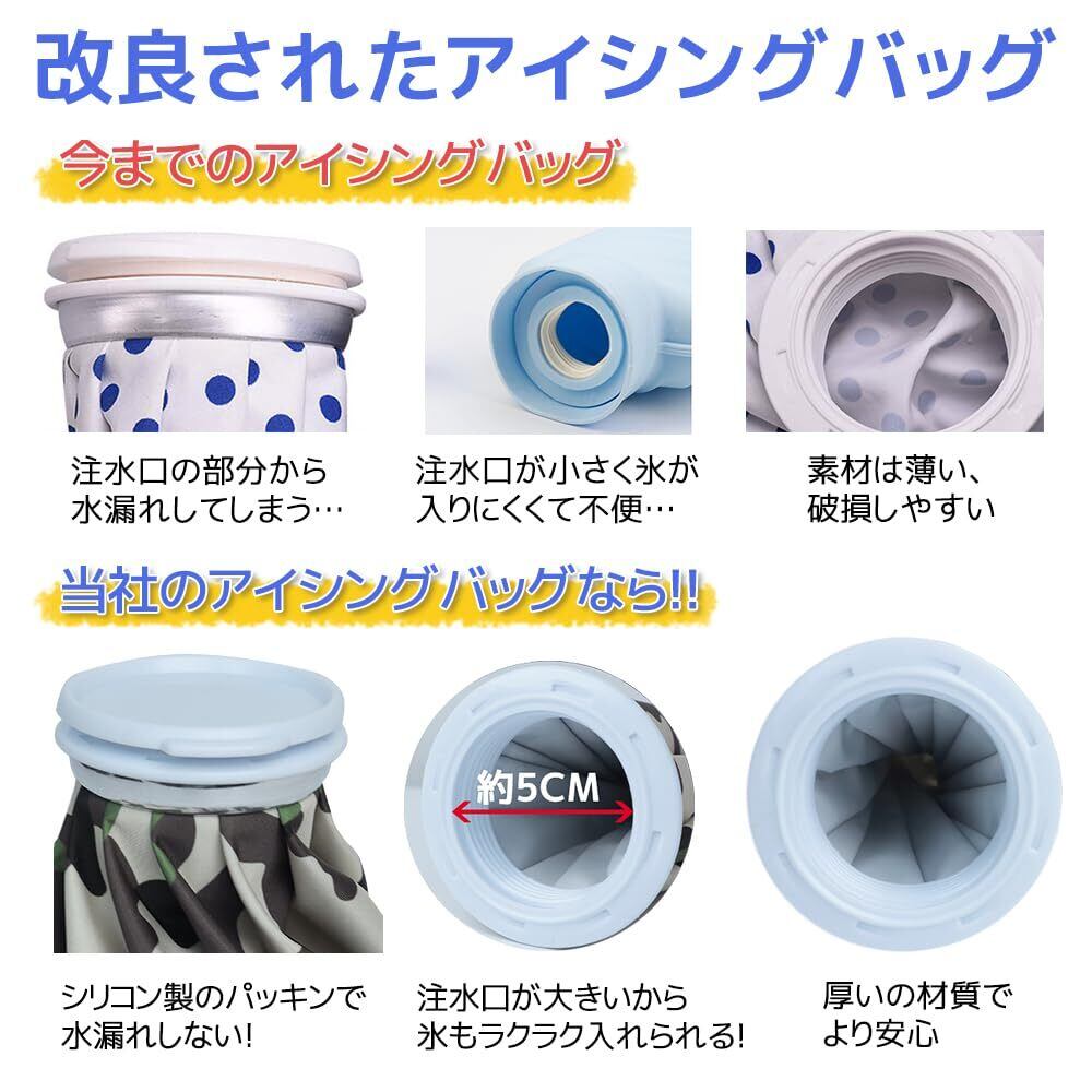 【大口径設計・水漏れ防止】アイシングバッグは大口径設計により氷の出し入れが簡単で、ネジ式のセーフティシールストッパーを使用しているので水漏れの心配はありません。【軽量で持ち運び可能】アイスバッグは持ち運びに便利で、軽量です。車、ワークデスク、自宅、旅行用バッグに入れて、すぐに冷却処置を行うことができます。