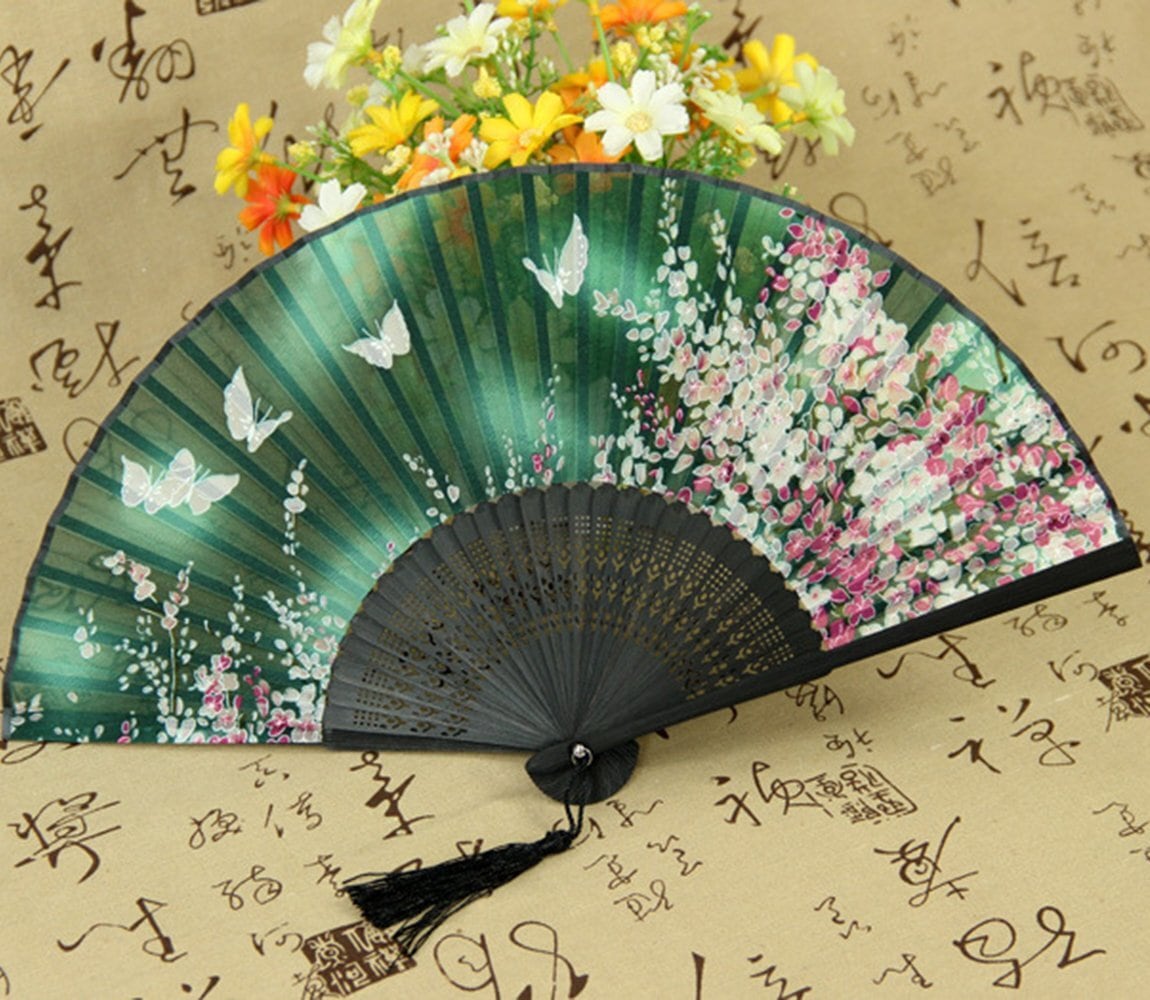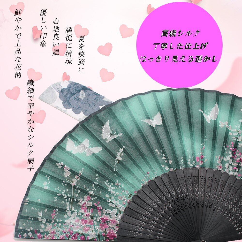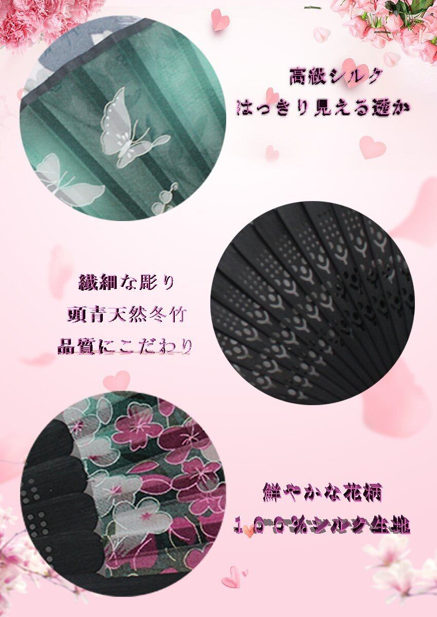[boshiho] 扇子 メンズ レディース おしゃれ 和風 竹製 シルク 正絹 綺麗 花柄 蝶々 桜柄 扇子袋 和小物 お祭り お土産 プレゼント