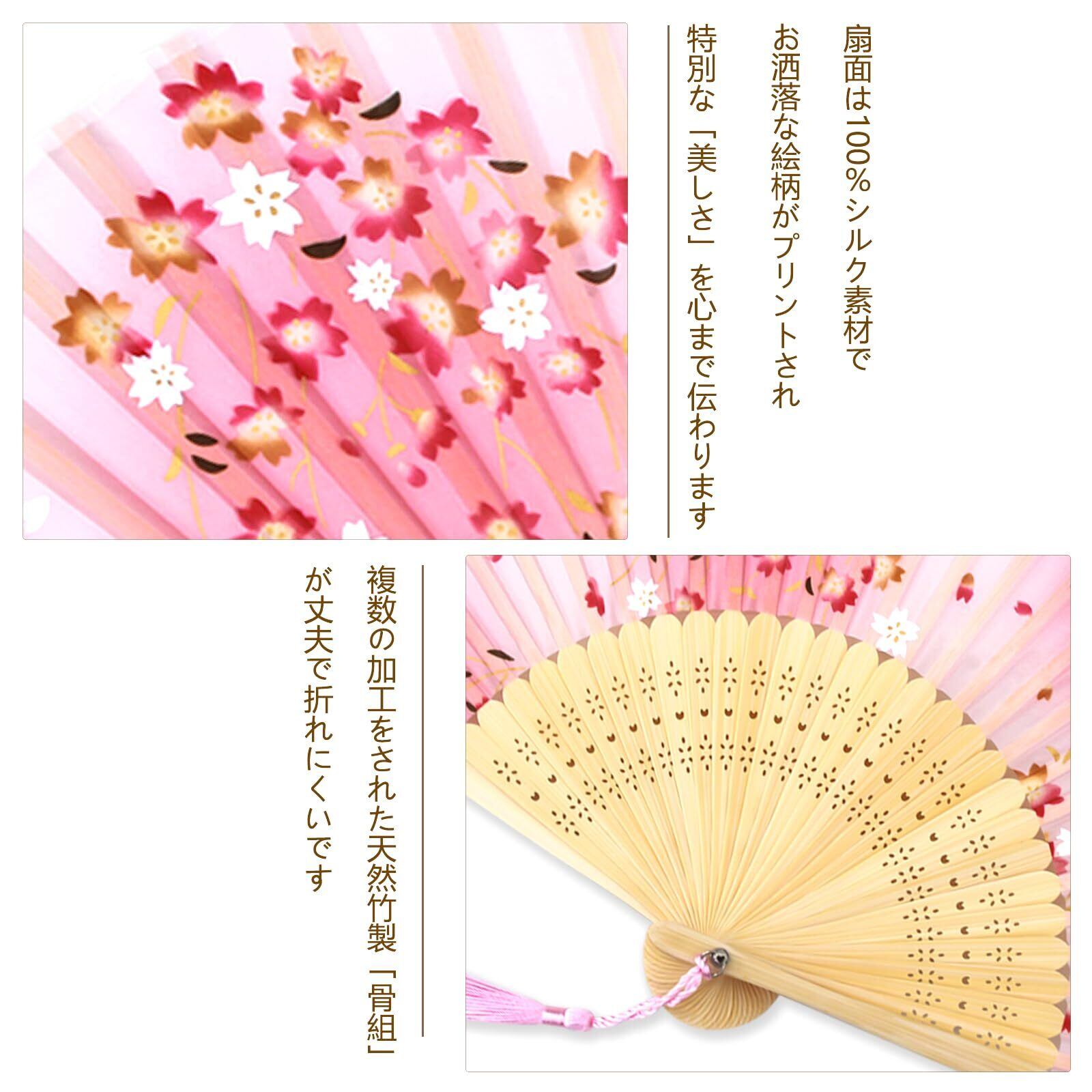 [boshiho] 扇子 メンズ レディース おしゃれ 和風 竹製 シルク 正絹 綺麗 花柄 蝶々 桜柄 扇子袋 和小物 お祭り お土産 プレゼント