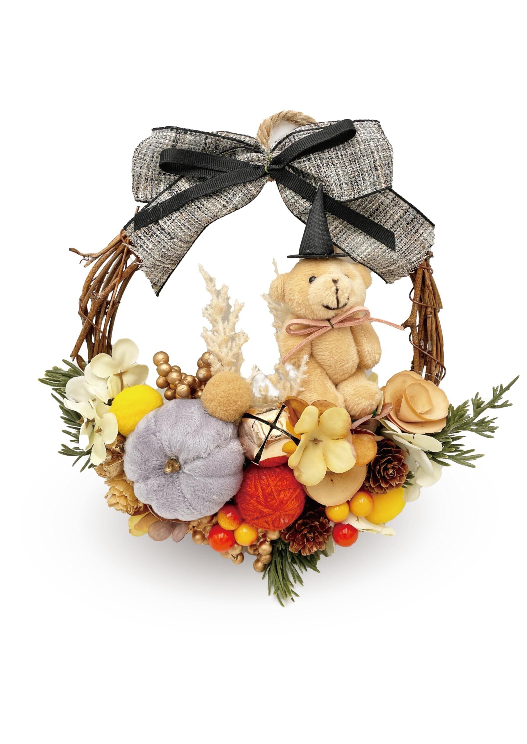 【数量限定】[ 2025年 mamawreath ]ハロウィン くま ベアー フラワーリース マスコット 花 ギフト プレゼント 人形 贈り物 おしゃれ 玄関 お祝い 誕生日 プレゼント ハーフベアーリースGR (HP-6328 B)