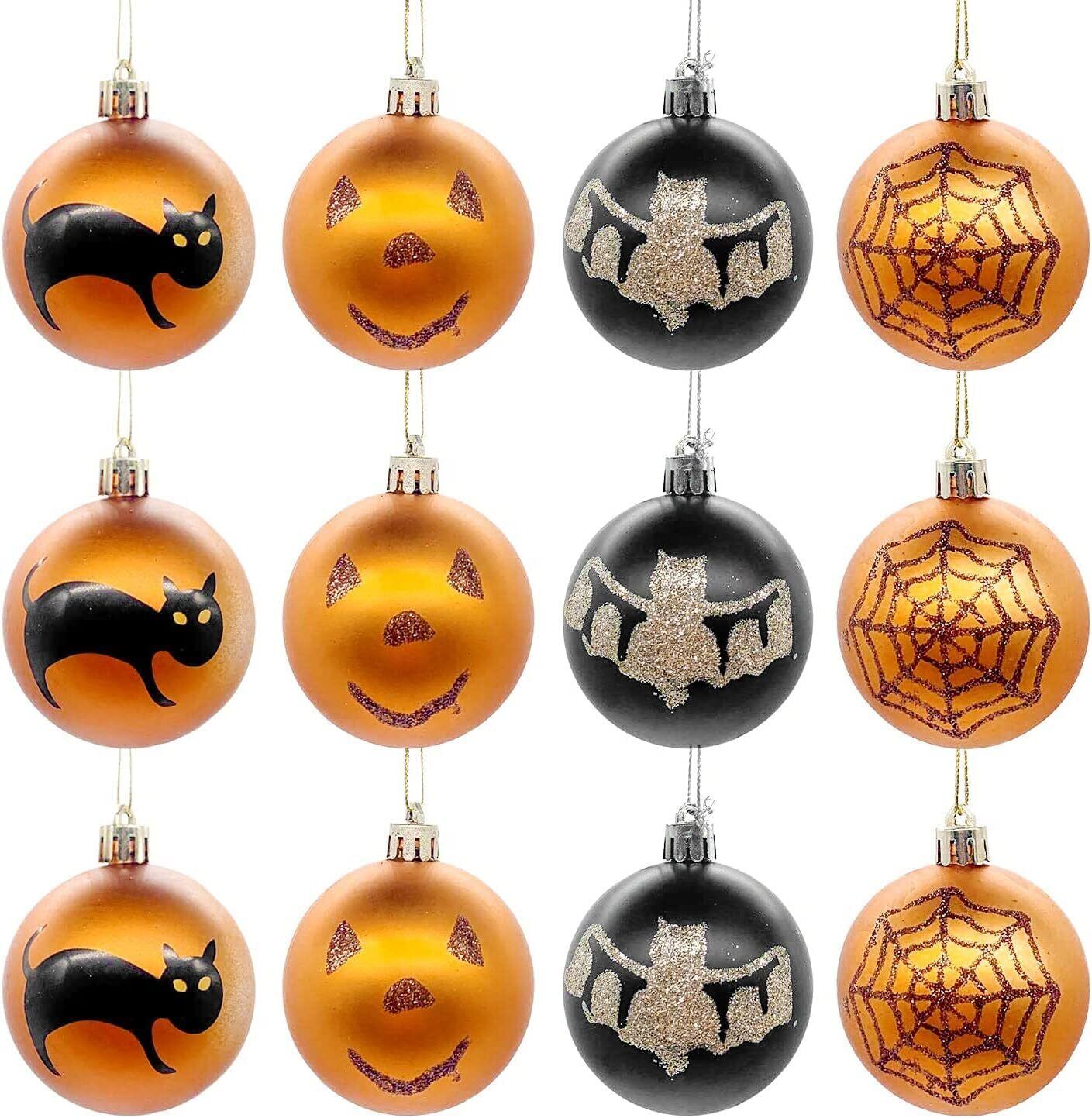 TAORAYO ハロウィン飾り ボール ハロウィン オーナメント ボール 12個入り 直径6cm 黒猫 笑顏 かぼちゃん コウモリ クモの巣 装飾ボール 大粒でツリーに映えるオーナメント 北欧 デコレーション ハロウィン 装飾ボール 店内飾り 屋敷仮装パーティ 学園祭 真撮影背景 パーティー イベント 小道具 店舗 ハロウィン飾り用 雰囲気