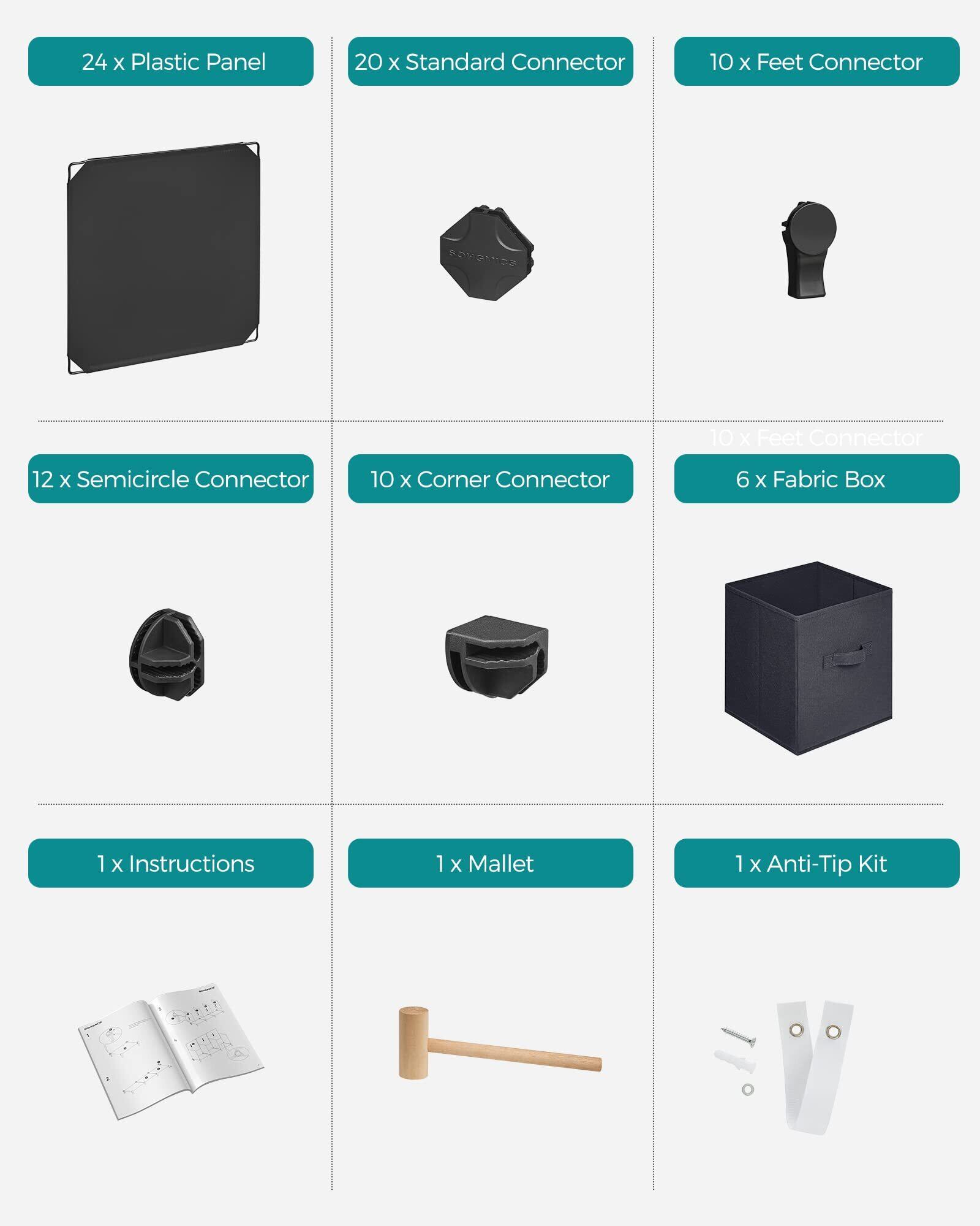 - キューブ収納オーガナイザー:ABSプラスチックコネクタ、PPプラスチックパネル、金属フレーム