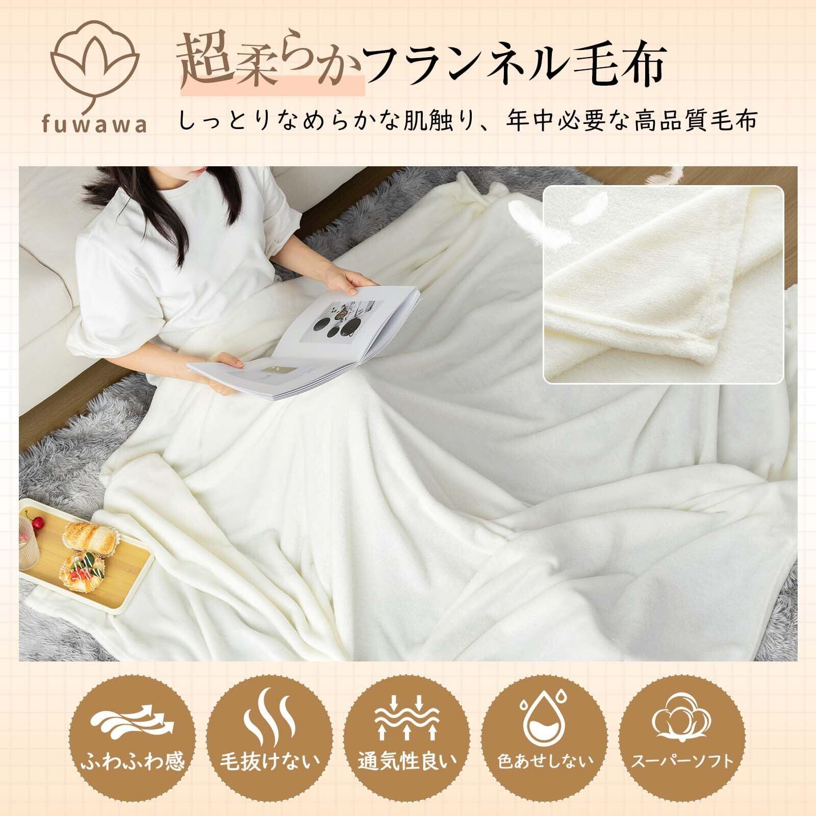 【人気商品】fuwawa 毛布 シングル 秋冬用 ブランケット 冷房対策 フランネル掛け毛布 マイクロファイバー もうふ 柔らかな肌触り 軽量 洗える 薄手 ふわふわ なめらか 四季適用 吸湿発熱 抗菌防臭 静電気防止 オールシーズン 北欧風 新生活 あったか(アイボリー・シングル・140×200cm)