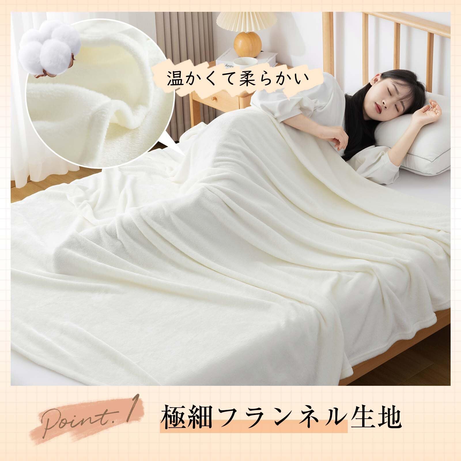 【ふんわりでなめらかな毛布】フランネル生地は、驚くほど軽量かつ心地よい暖かさを提供します。表面は綿毛で覆われており、手触りは柔らかく滑らかで、細い超極細繊維があったかい空気をたくさんため込み、薄くてかるいのに暖かいです。暖かい雲のように包まれるしあわせのぽかぽか感です。生地は変形しにくく、通気性と耐久性に優れています。