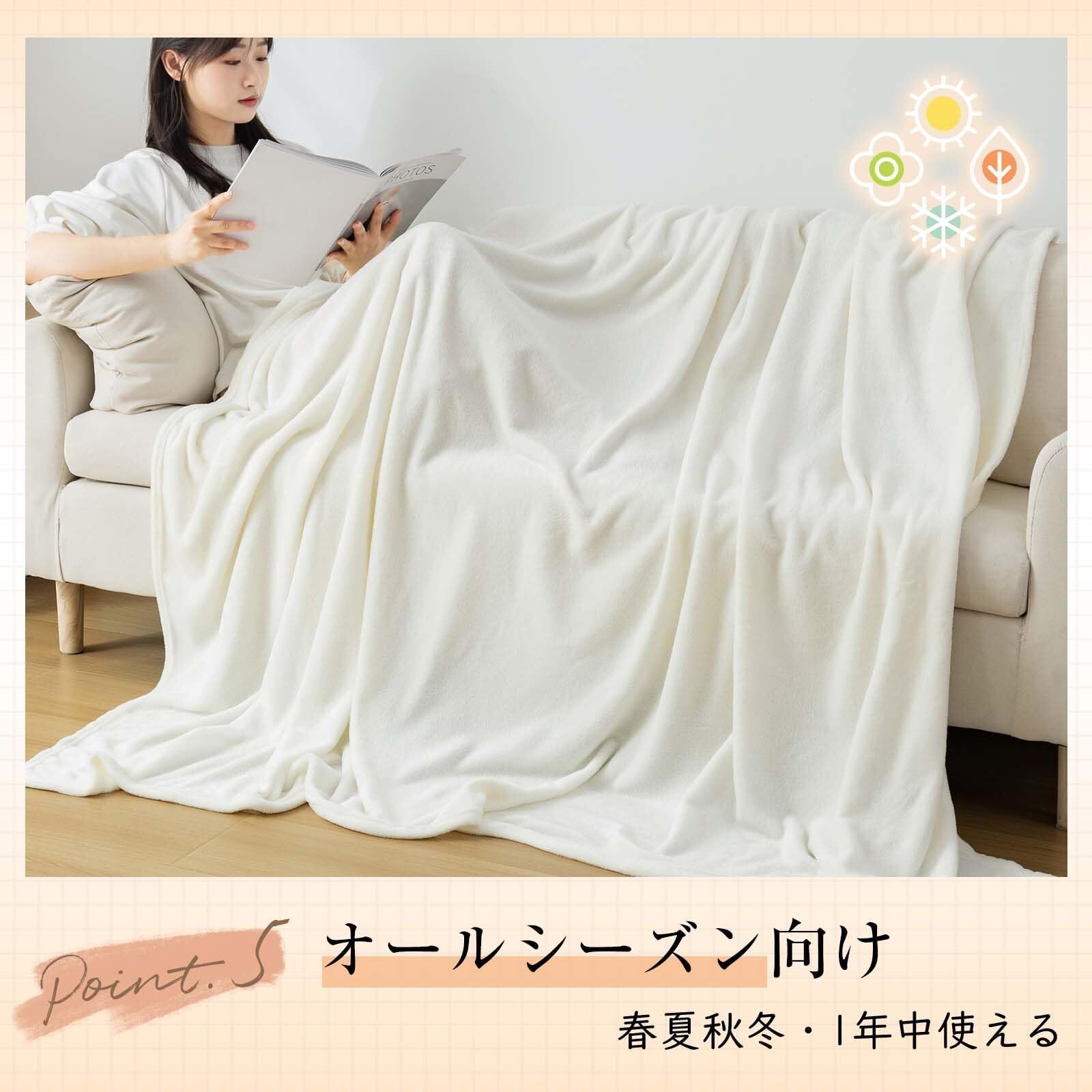 【オールシーズン向け】程よい厚ささ、薄づきず厚さ分けしません。春夏秋冬、一年中使える、最高のパートナーです。暖かくなってきたら毛布1枚で、体にフィットして冷たい空気をガードします。秋冬の不安定な気温時は肌掛け布団として使ったり、布団と組み合わせて使ったりして、温かみをもたらします。夏には冷房対策、冬には足元の冷え対策、そしてあらゆる場所で大活躍。