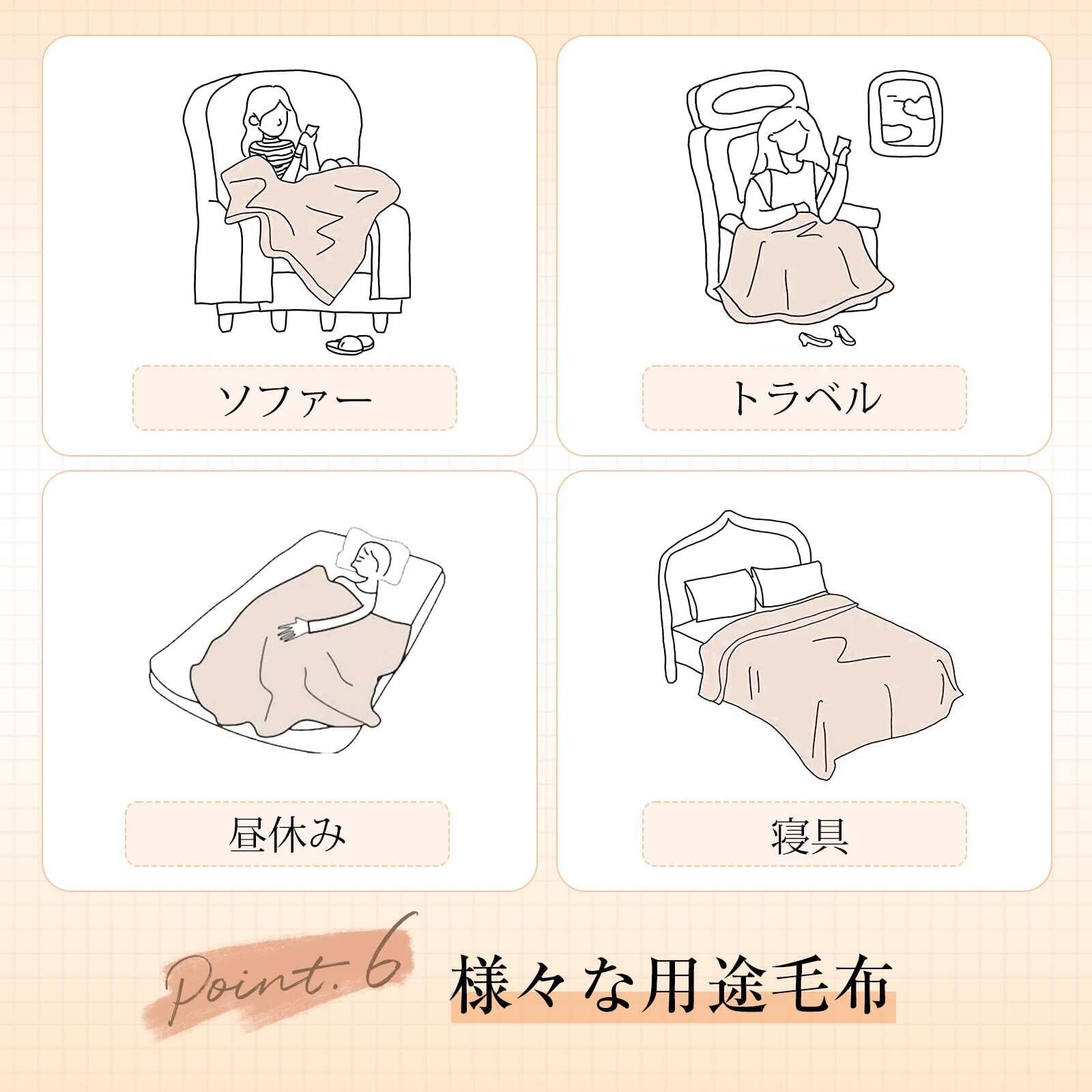 【軽くて暖かい素材】フランネル素材を使用し、良い通気性を確保するとともに、優れた耐久性をしています。超軽量ブランケットで、圧迫感を与えないです。薄くて軽い割には、高い保温性と耐久性を兼ね揃え、これ一枚だけでかなり長い季節をカバーしてくれます。密度の高いフランネル生地は、綿毛がより繊細で密集し、手触りがより滑らかで柔らかいです。