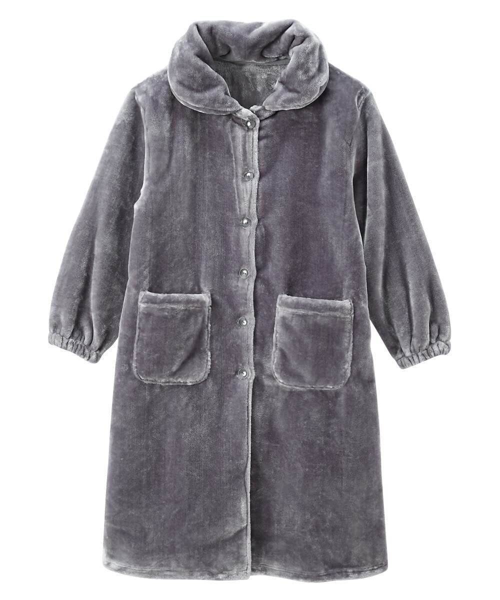 ■首回りもしっかりあったか たっぷりとボリュームのある襟付きなので首元まであたたかく過ごせます。 ■ガウンとしても着用できる ワンピースとしての着用だけでなく、ボタンを開ければガウンのようにパジャマの上から羽織ることもできます。