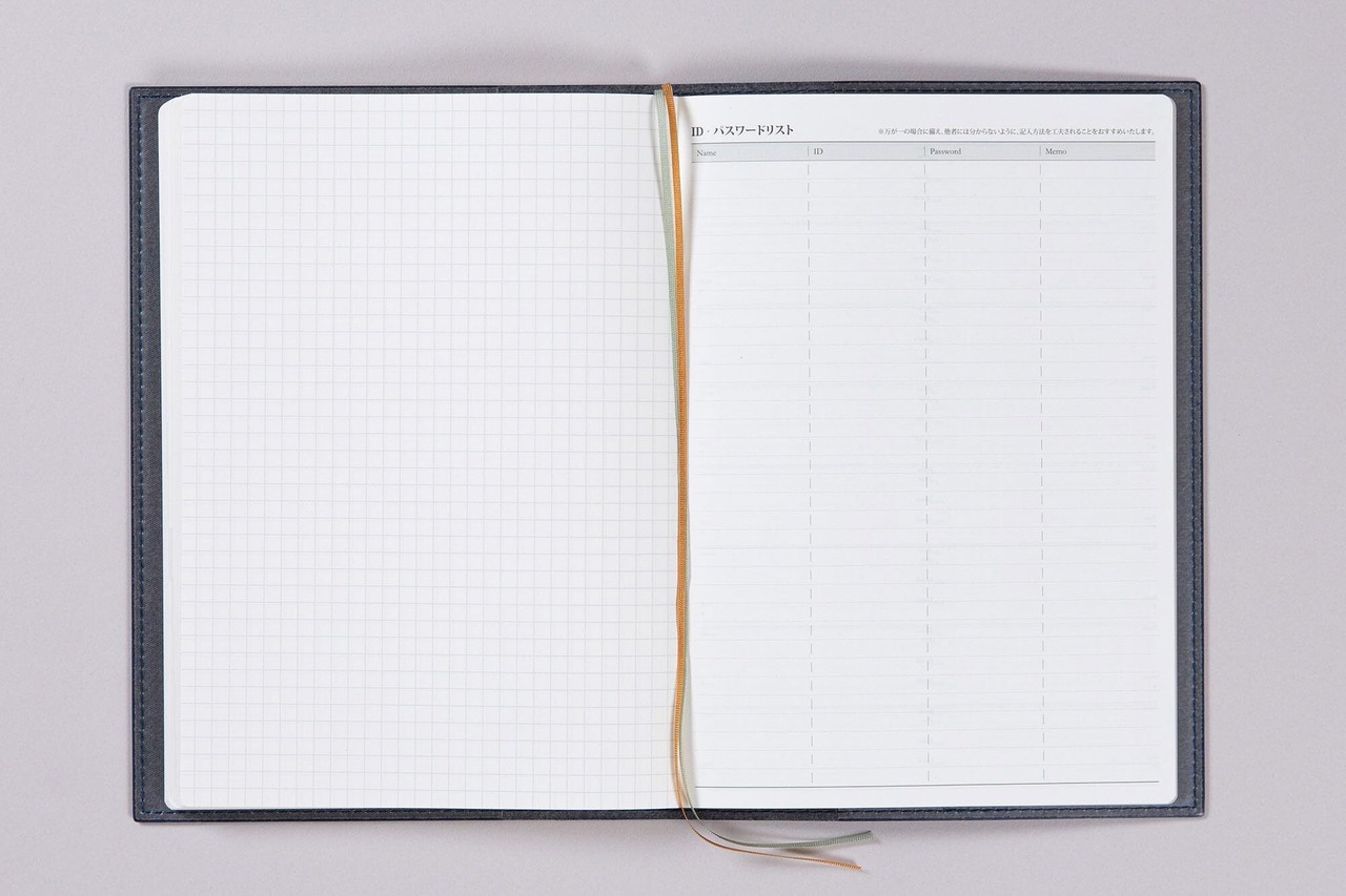【商品詳細2】表紙タイプ:皮革調 ●刷色:3色刷 ●ページ数:192頁 ●付録:年齢早見表,ID・パスワードリスト,アドレスメモ,方眼メモ,印紙税額一覧表 ●別冊:なし