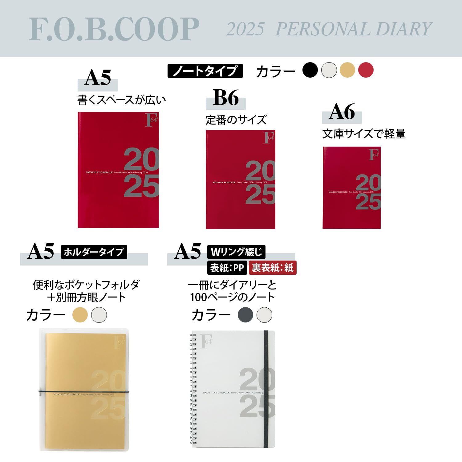 キョクトウ 手帳 2025年 2024年10月始まり FOBCOOP A5 Wリング綴じタイプ マンスリー 白 PBF57W25