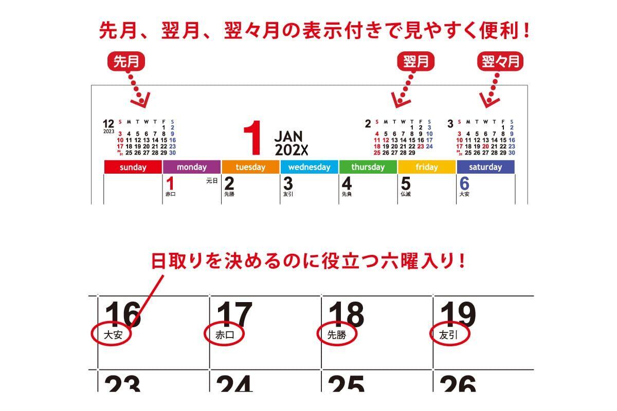 【六曜入り】日取りを決めるのに役立つ、大安、仏滅などの六曜入り。