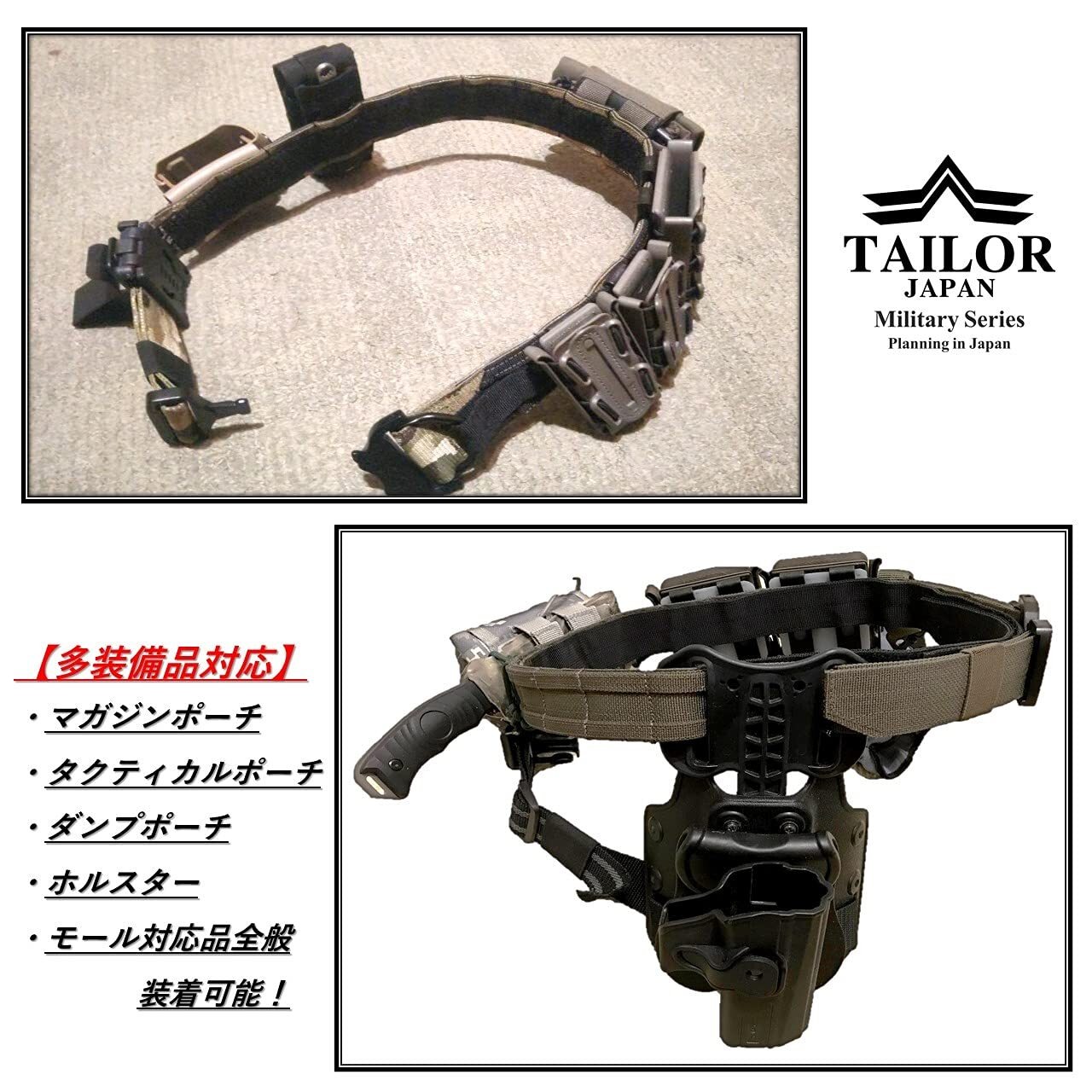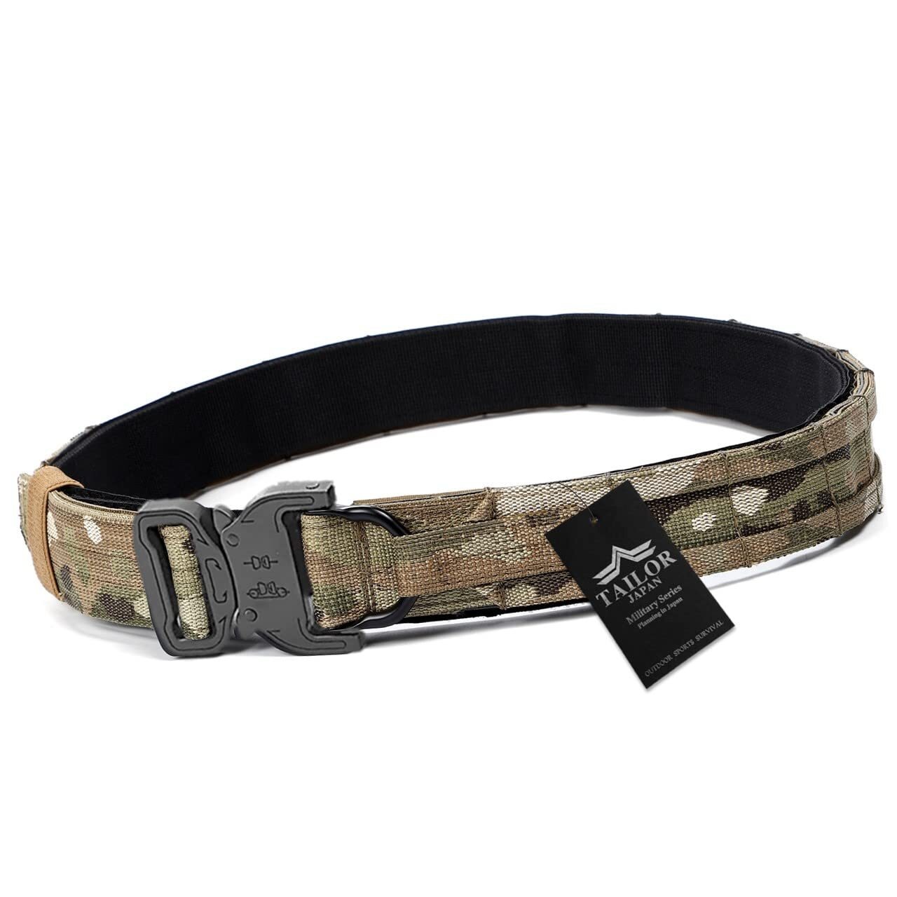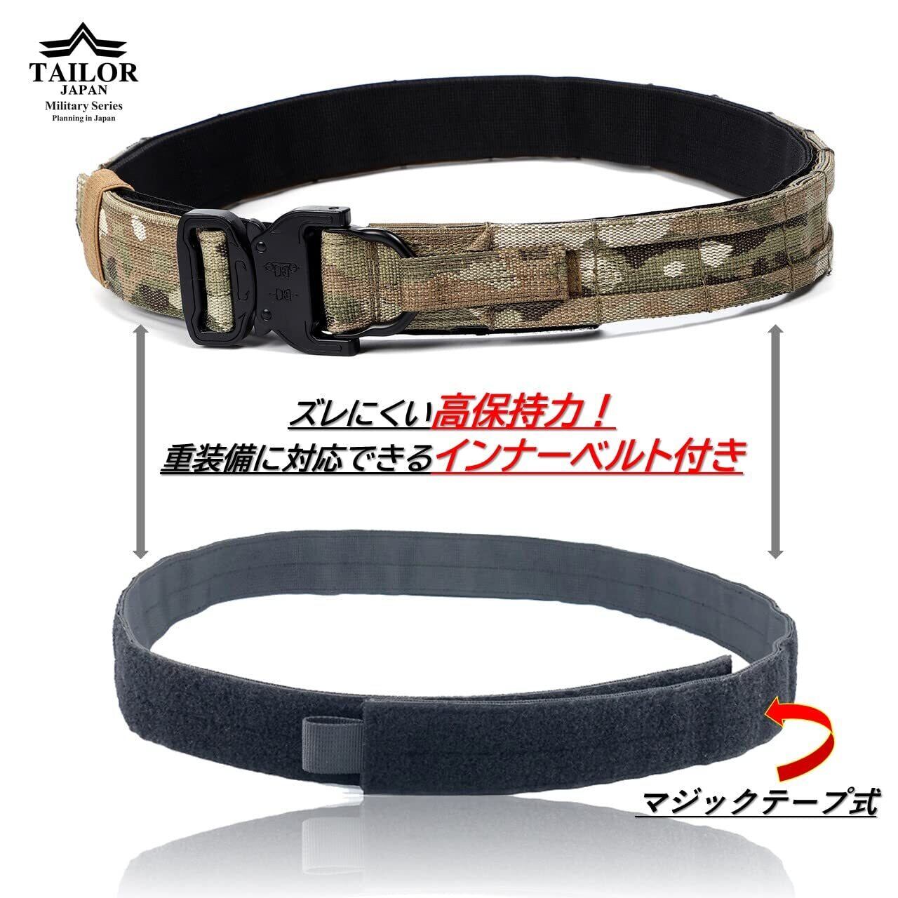 [TAILOR JAPAN] デューティーベルト ガンファイターベルト サバゲーベルト タクティカルベルト インナーベルト付き ガンベルト モールベルト コブラバックル 実物素材 迷彩 (マルチカム, M)