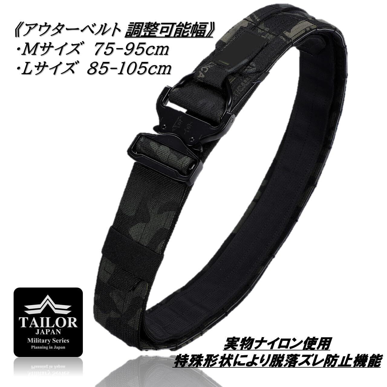 【数量限定】[TAILOR JAPAN] デューティーベルト ガンファイターベルト サバゲーベルト タクティカルベルト インナーベルト付き ガンベルト モールベルト コブラバックル 実物素材 迷彩 (マルチカム, M)