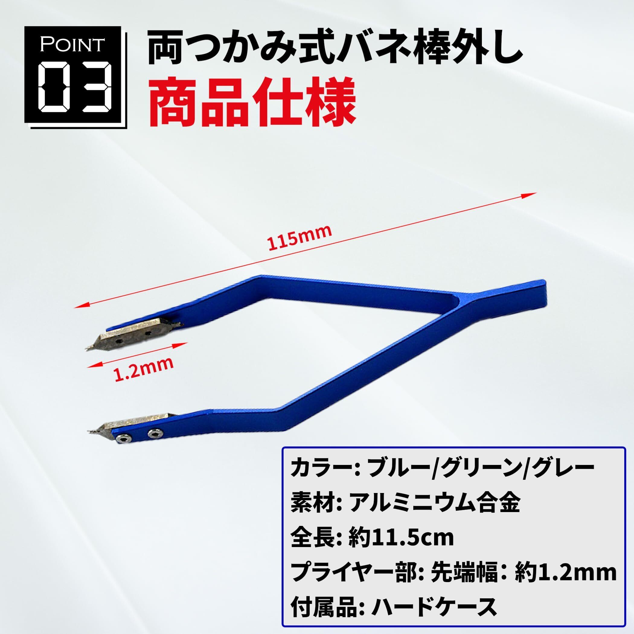 商品仕様 : カラー: ブルー/グリーン/グレー 素材: アルミニウム合金 全長: 約11.5cm プライヤー部: 先端幅(金属部分):前後共に約1.2mm ※先端は六角レンチで簡単に変更できます 付属品: ハードケース