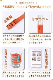 【8mm幅の平ひも】8本のゴムが内蔵され、耐久性が高く、引っ張りにも強いです。金属製のバックルを使用しているので、激しい運動でも外れにくいです