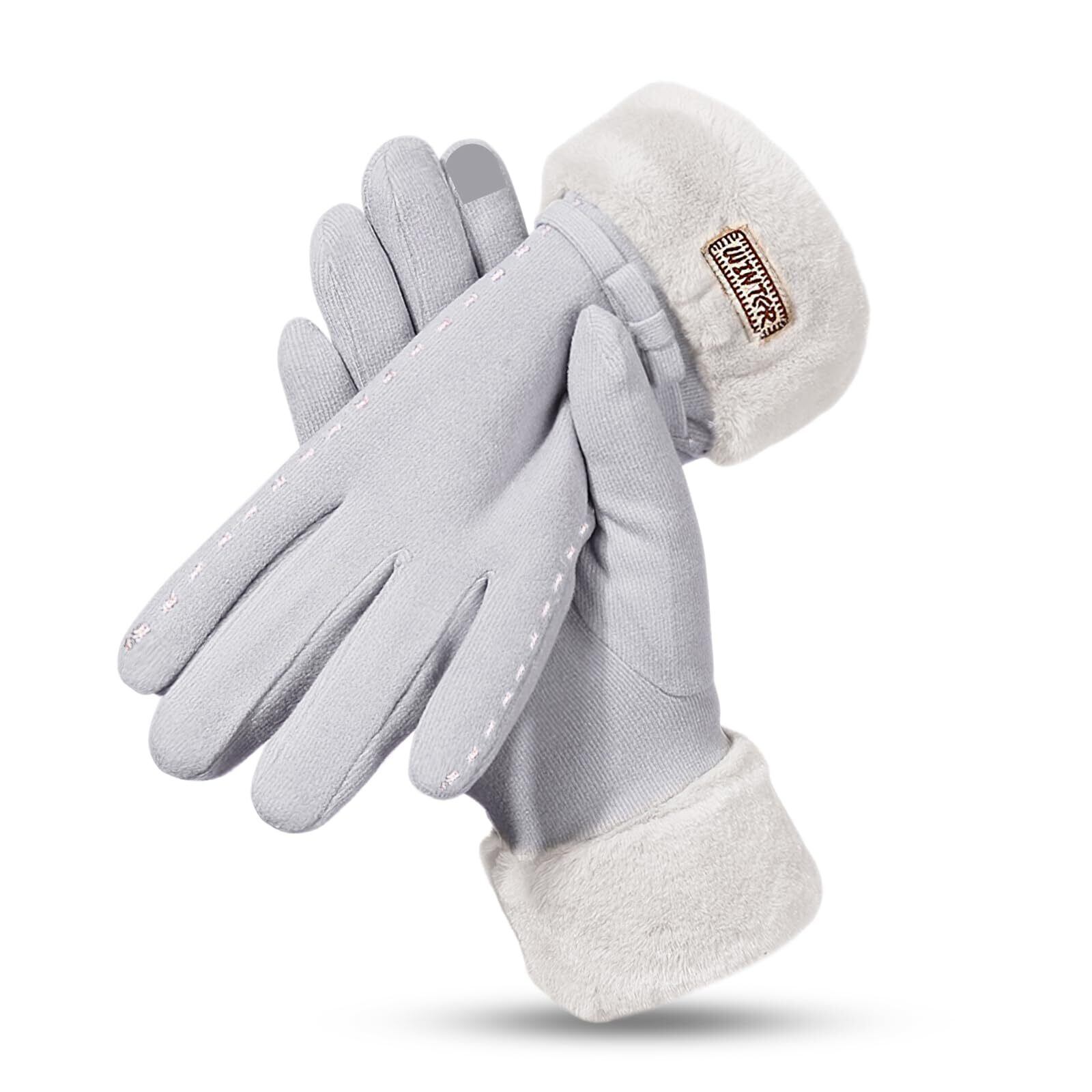 【数量限定】[AMOVO] 2024年ファー手袋 レディース タッチパネル対応 手首ファー付 ふわふわ 暖かい 裏起毛 通勤 通学 自転車 防寒 防風 女の子 五本指 グローブ