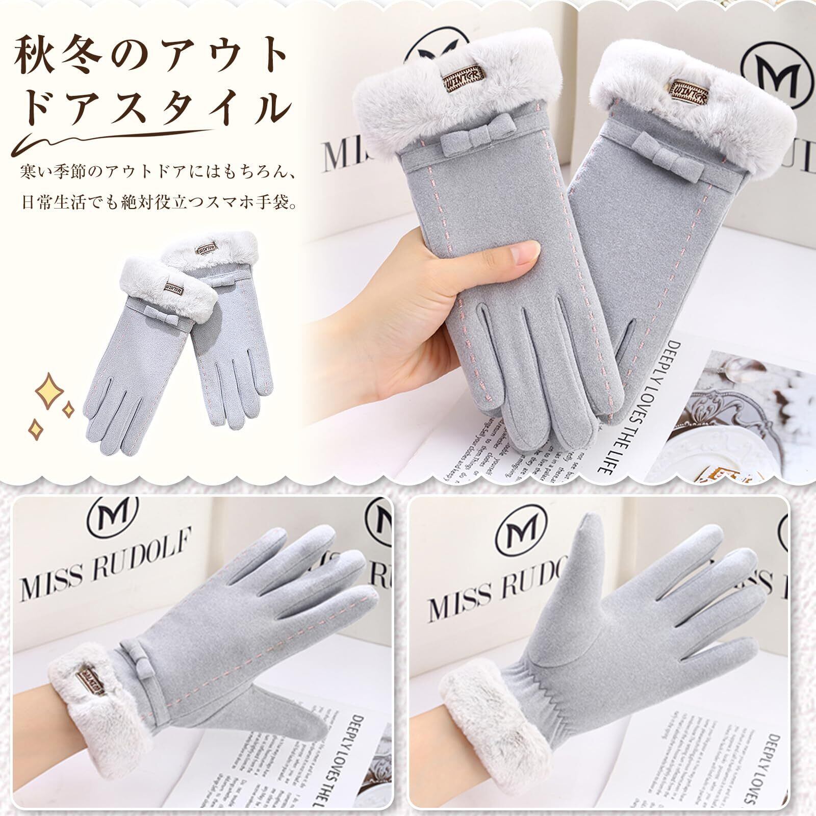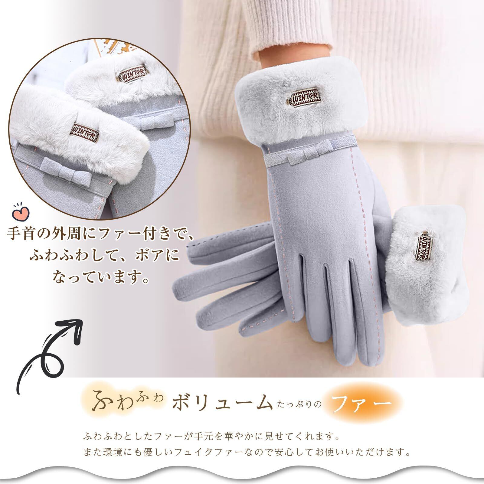 [AMOVO] 2024年ファー手袋 レディース タッチパネル対応 手首ファー付 ふわふわ 暖かい 裏起毛 通勤 通学 自転車 防寒 防風 女の子 五本指 グローブ