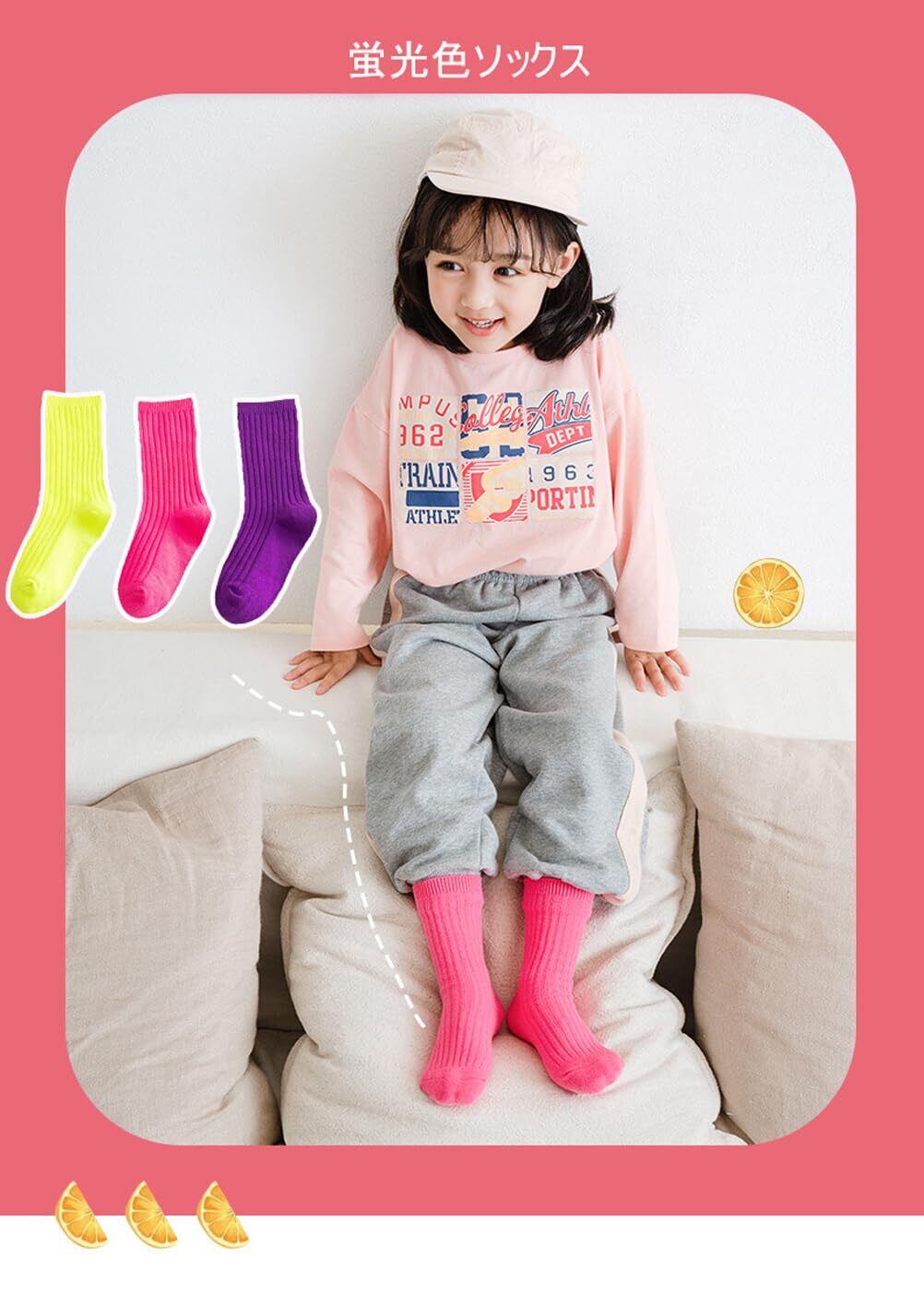 蛍光色のネオンカラーが特徴で、他の靴下とは一線を画す存在感を発揮します。運動会やパーティーなど、どんなシーンでも注目されること間違いなしです!お子様のファッションに遊び心をプラスして盛り上げます。