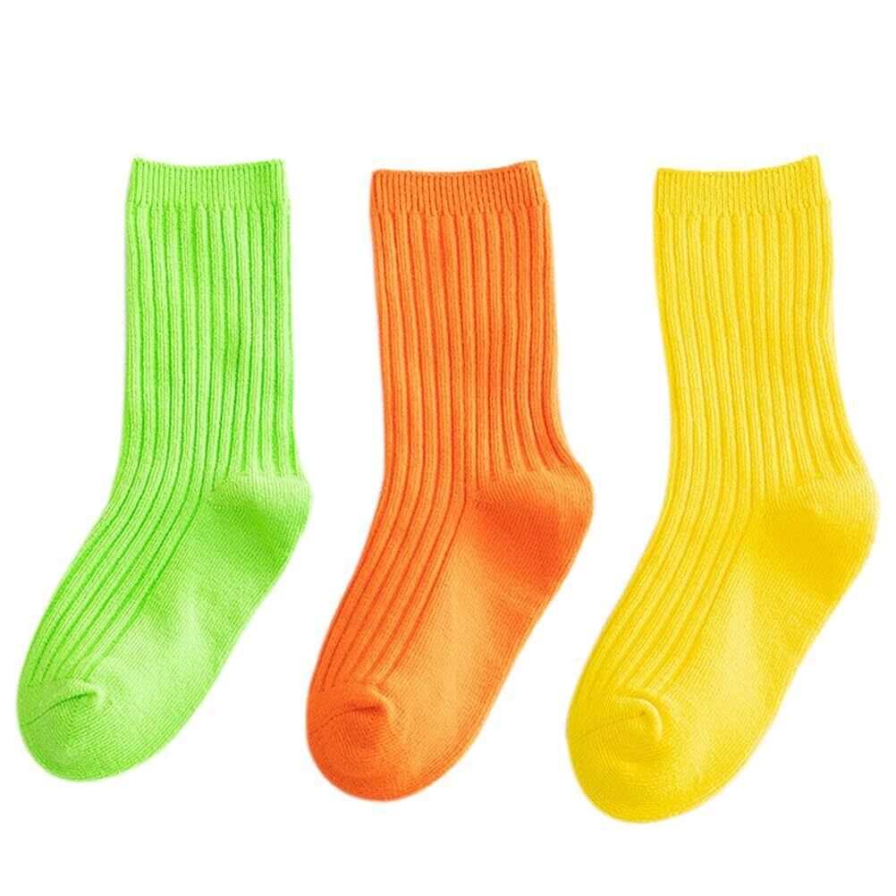 [eigenn] キッズ靴下 子供ソックス カラフル キッズ 子供 靴下 ソックス 女の子 男の子 運動会 ダンス 目立つ 蛍光色 リブ編み ネオンカラー 3足セット