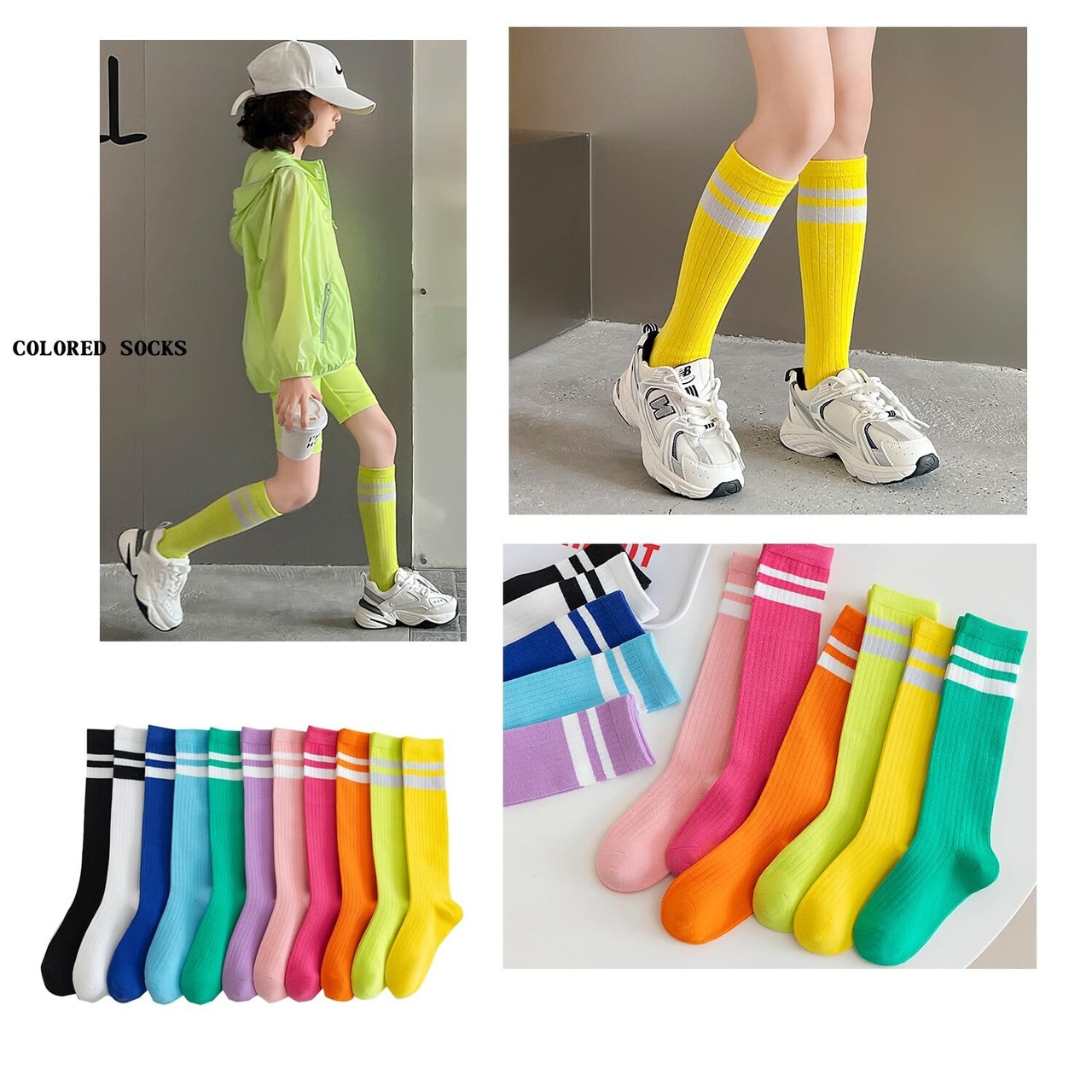 【新春セール】[eigenn] 選べる11色 キッズ靴下 子供ソックス ラインソックス カラフル ハイソックス キッズ 子供 靴下 ソックス 女の子 男の子 ボーダーソックス 運動会 ダンス 目立つ 蛍光色 リブ編み ネオンカラー