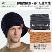 【二重構造・究極の防寒】軽量で保温性に優れた、伸縮素材も防寒も抜群のニット帽です。生地を二重の厚さにするので、裏側がふわふわ起毛素材を加工して、保温性を高めています。柔らかくて通気性も抜群!頭、耳を冷たい風から守り、冬に欠かせない防寒グッズです!