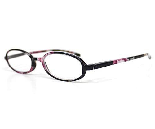 [Bayline] ベイラインリーディンググラス オーバルスリムフレーム フラワー 1651E +1.50 ブラックパープルフラワー ハードケース レディース おしゃれ老眼鏡
