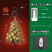【8つの点滅パターン・リモコン遠隔制御】連統变更、波状変化、点滅变更、ちらつき变更、急速变更、低速变更、ドリーム变更、全点灯など8つの点滅パターンから好きな光り方を選んで、よりインパクトのあるライトアップを楽しめます。リモコン付きで8つの点灯モードをコントロール。オンオフやタイマー、点灯モードの切り替えを離れた場所からも操作できます。(リモコンをUSB端に向けてください、リモート距離は最大5mまで)光量調整機能付き、25%、50%、75%、100%という4つの明るさが調整できます。