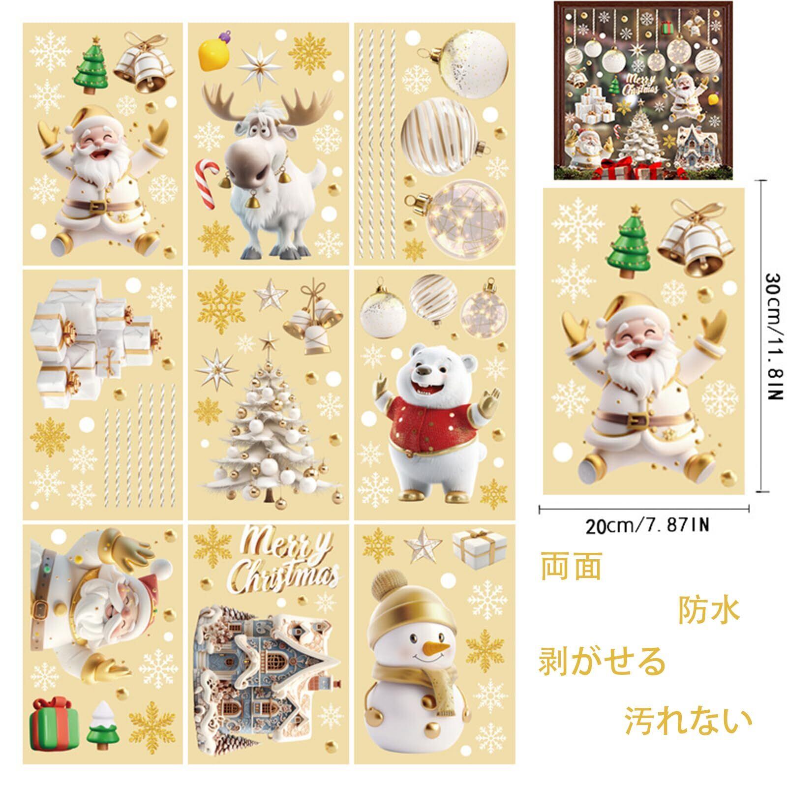 【在庫セール】FINGOOO クリスマス シール 窓 ステッカー 飾り 9枚・20×30CM 116pcs ウォールステッカー 剥がせる 立体 ジェル 汚れない 防水 両面 静電気 ガラス 白い 雪の結晶 説明書付き