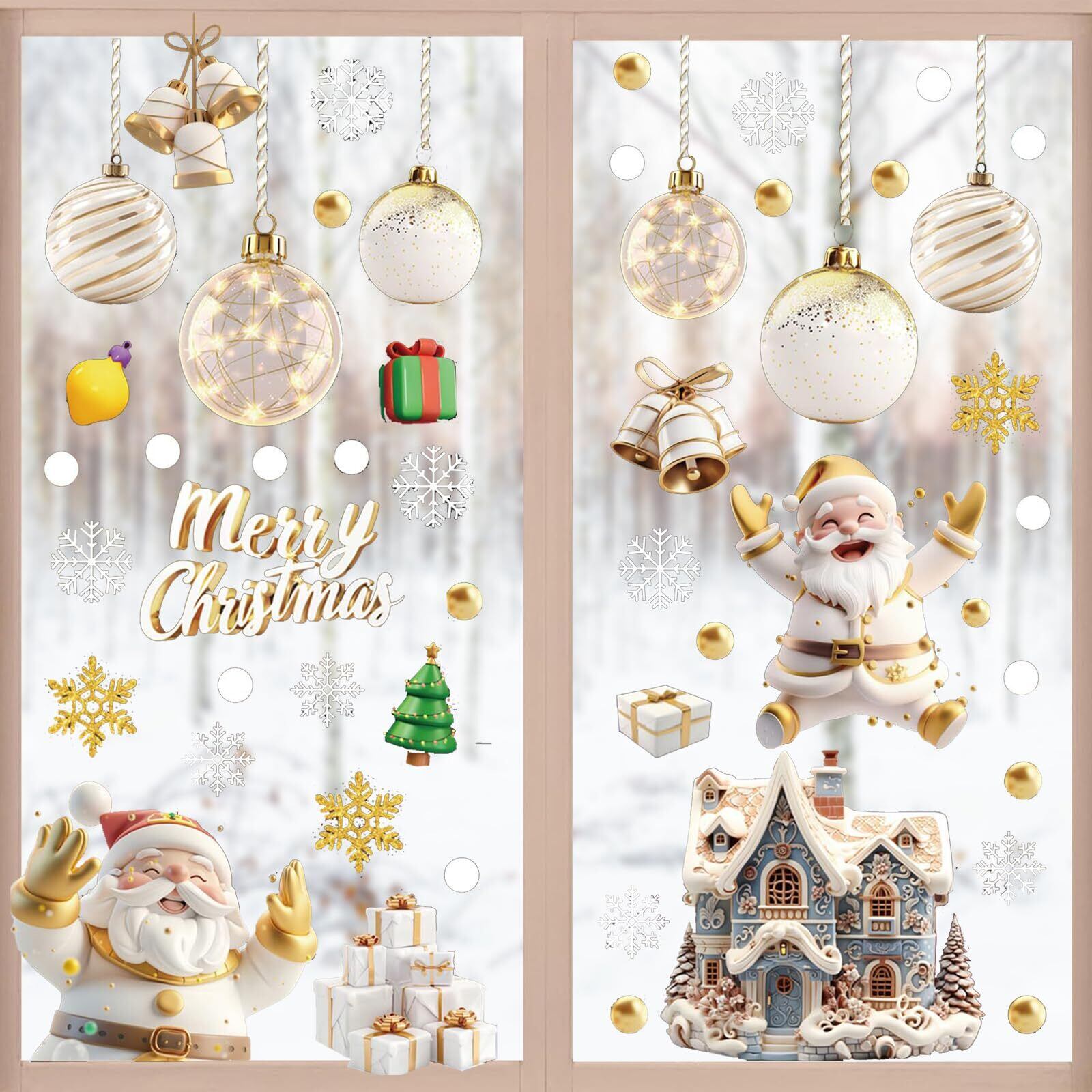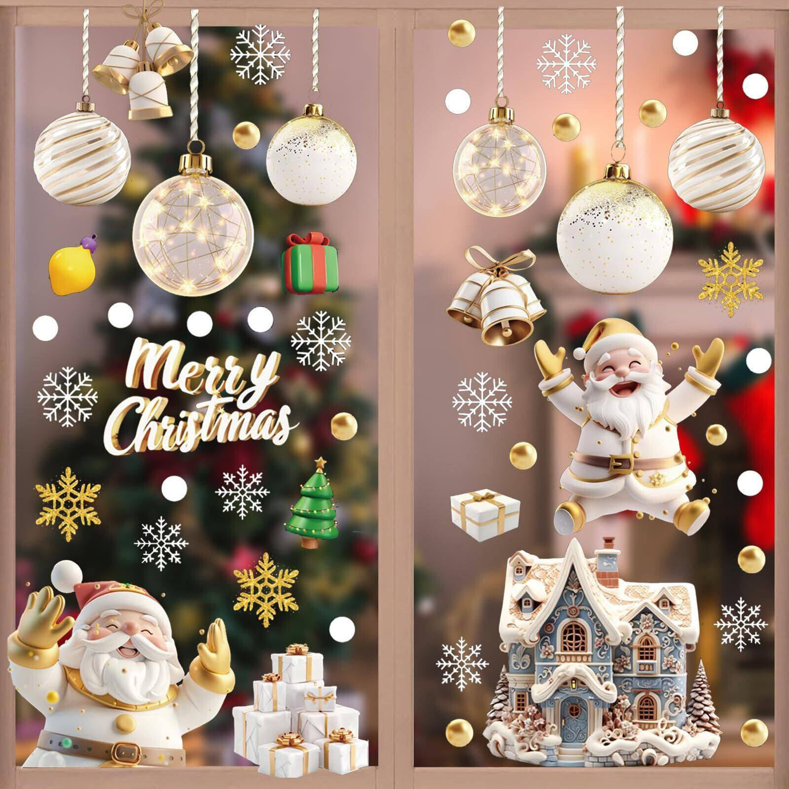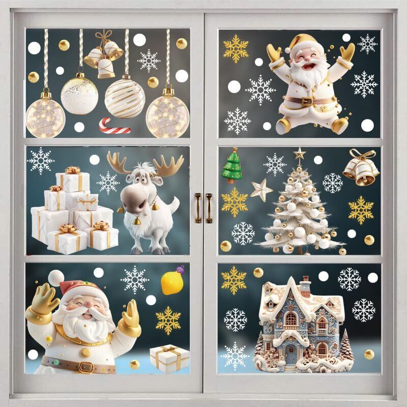 FINGOOO クリスマス シール 窓 ステッカー 飾り 9枚・20×30CM 116pcs ウォールステッカー 剥がせる 立体 ジェル 汚れない 防水 両面 静電気 ガラス 白い 雪の結晶 説明書付き