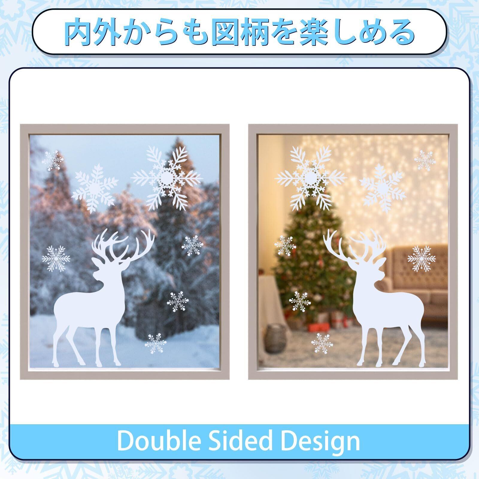 【大容量214点入り】雪の結晶・トナカイなど北欧のデザインたっぷり入ってる静電気ステッカー、このセットだけで窓を可愛くなります!白一色なのでカンタンに店舗やお部屋が一気にホワイトクリスマスに変身