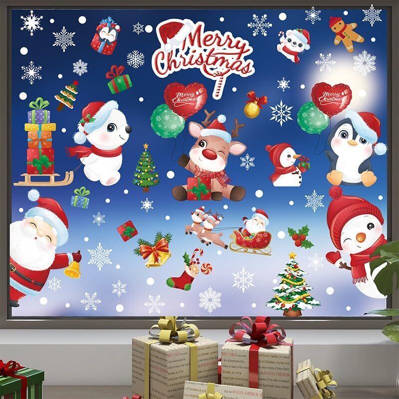 【大容量168点入り】雪の結晶・サンタ・トナカイなどクリスマスっぽいデザインたっぷり入ってる静電気ステッカー、このセットだけで窓を可愛くなります!カンタンに店舗やお部屋が一気にクリスマスに変身