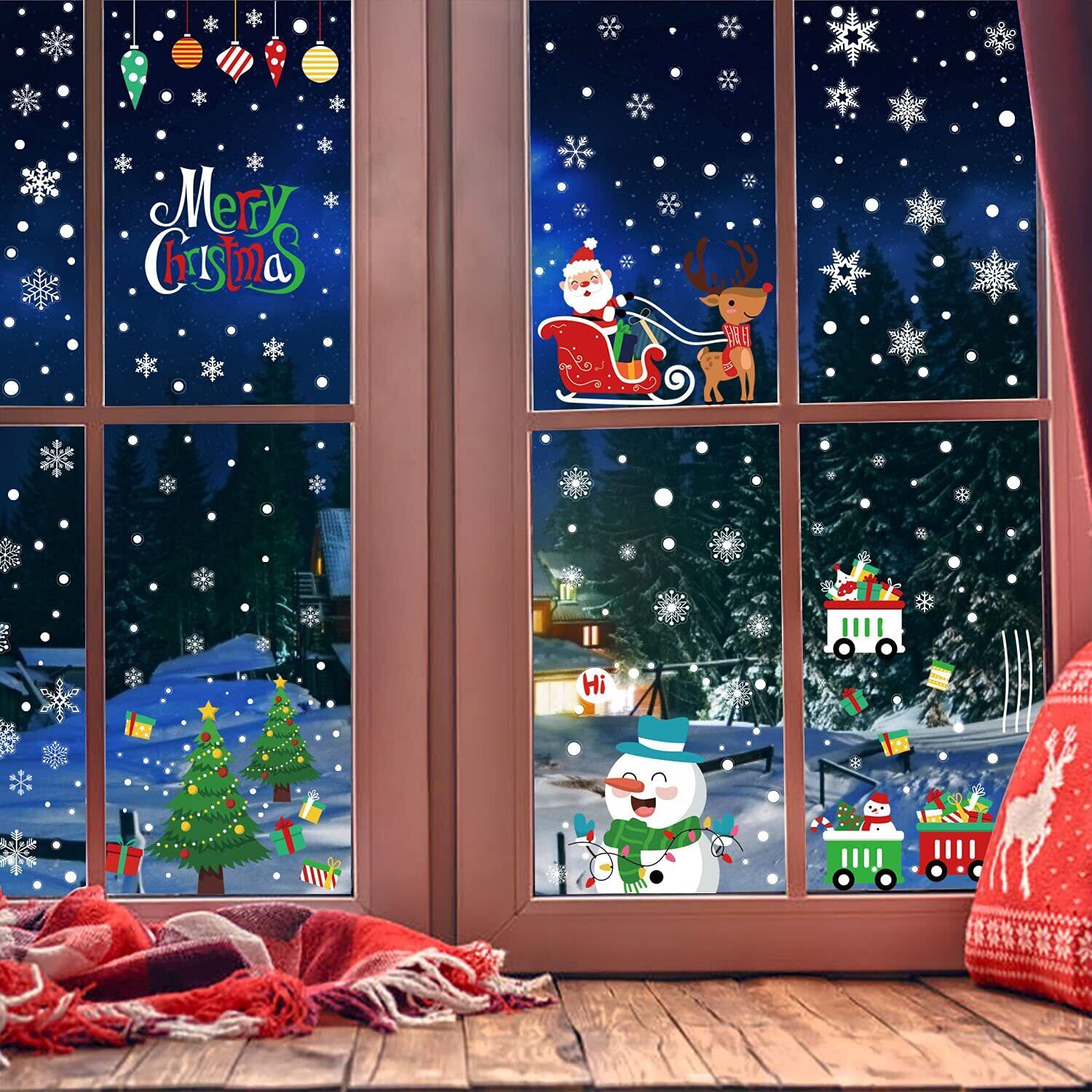 DERAYEE クリスマス ステッカー 静電気 シール 剥がせる 汚れない 400pcs入り 窓 装飾品 Merry Christmas (雪だるまとそり)