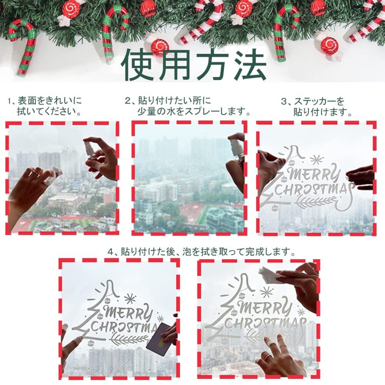 この静電気シールは、窓や壁にしっかりと貼り付けることができ、剥がす際も跡が残らないため、手軽にクリスマスデコレーションを楽しめます。賃貸住宅でも安心してお使いいただける設計です。