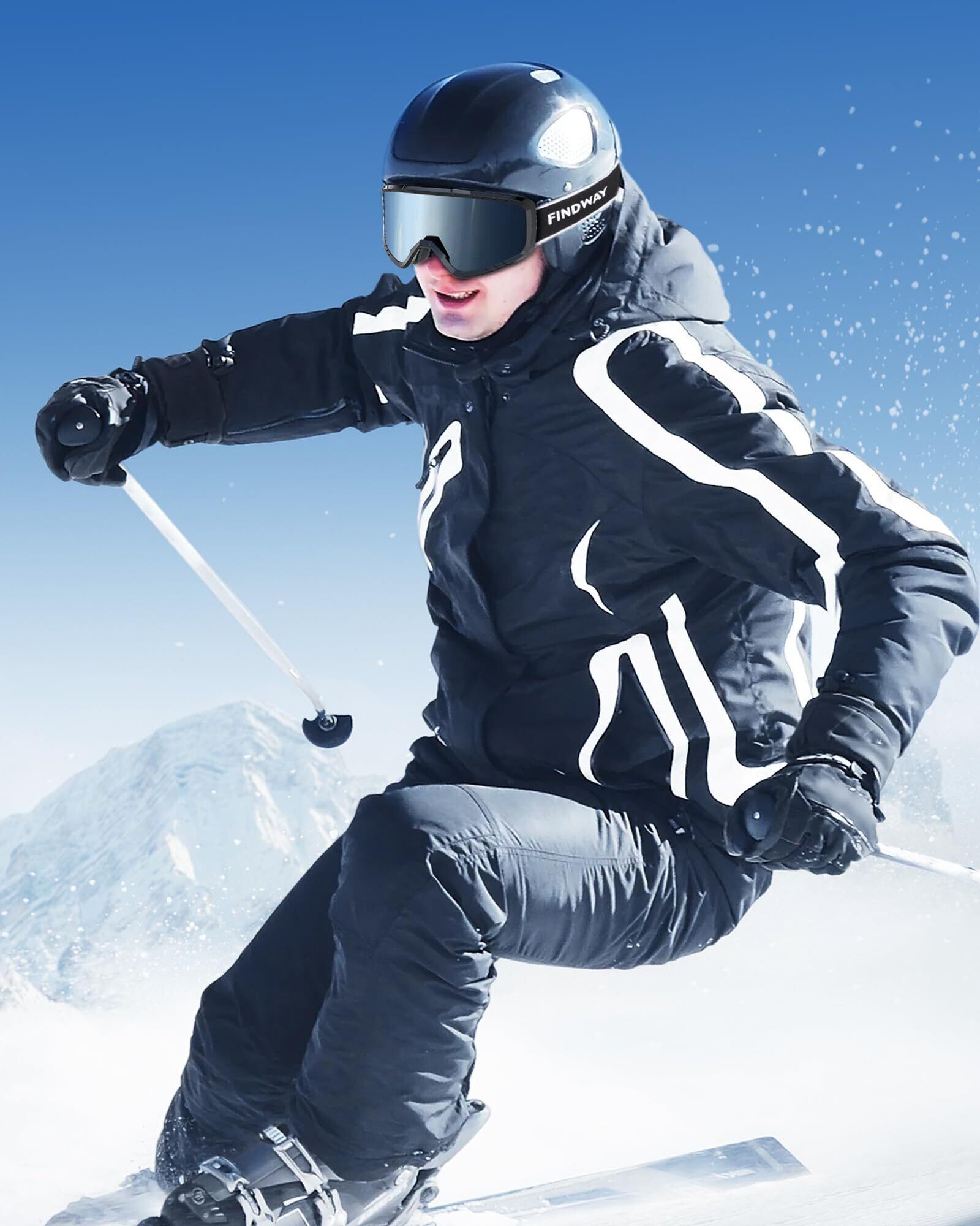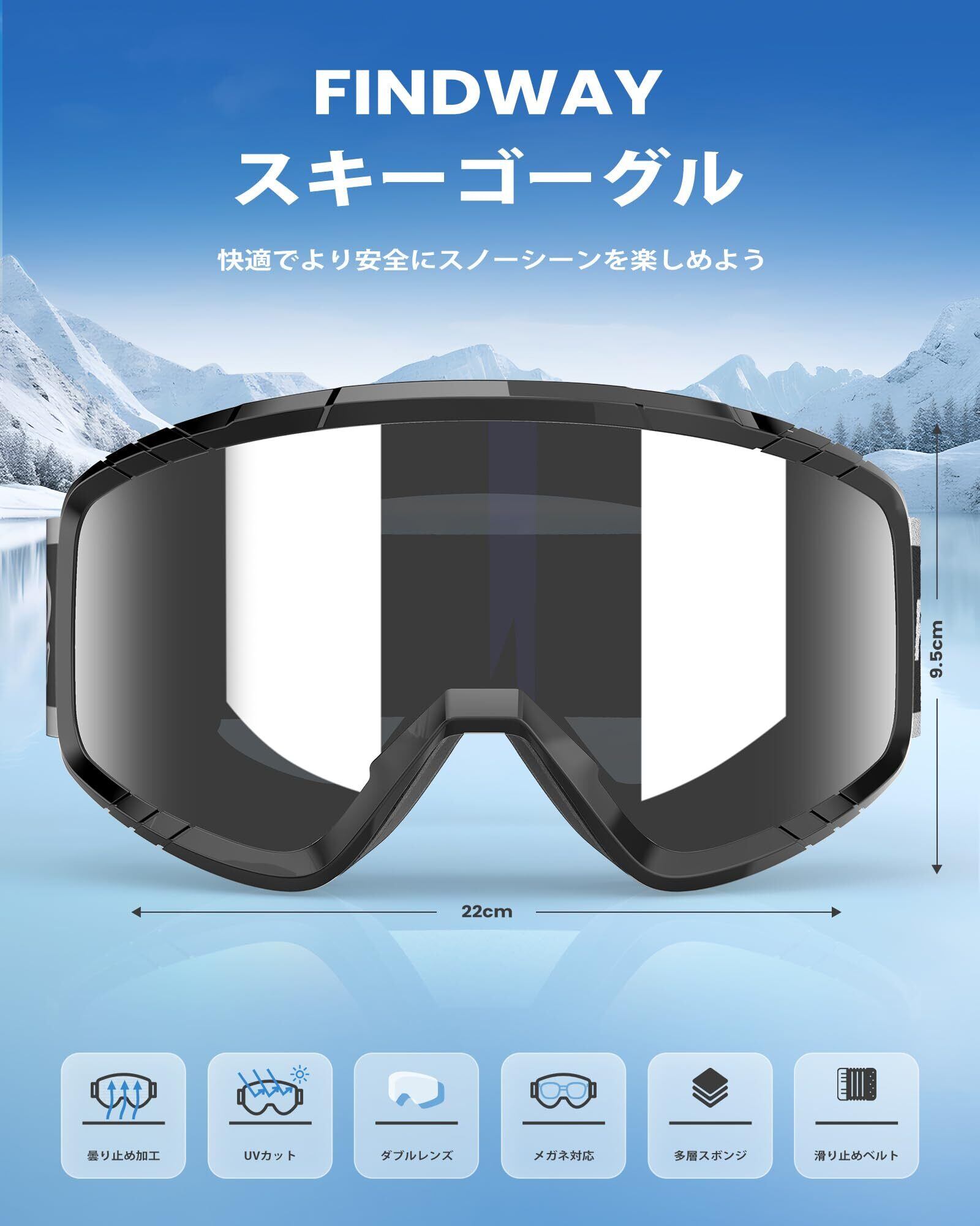 [Findway] スキーゴーグル キッズ スキーゴーグル 大人 スノーゴーグル メンズ スノボ ゴーグル 眼鏡対応 スノーボードゴーグル OTG 広視野 防風/防雪/曇り止め UVカット ヘルメット対応 軽量と耐衝撃