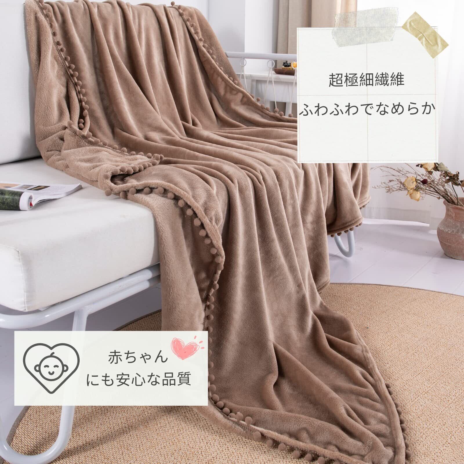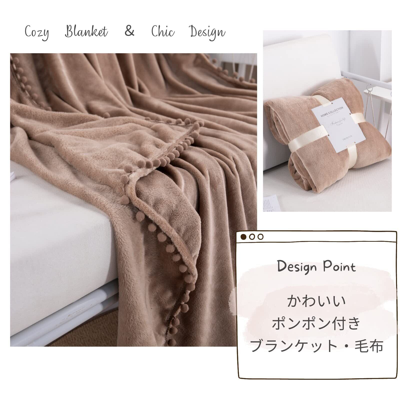 Mokoya 毛布 シングル 可愛い ブランケット 130x160cm 膝掛け 大判 おしゃれポンポン付き ふわふわ柔らかい 多用途 肩掛け 軽量 洗える 通年使用 (カーキ)