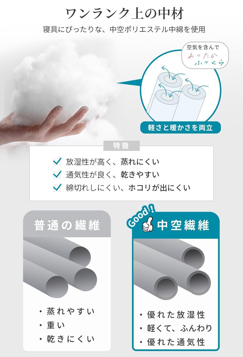 特徴 SEK認証, 抗菌, 洗える, 軽量, 通気